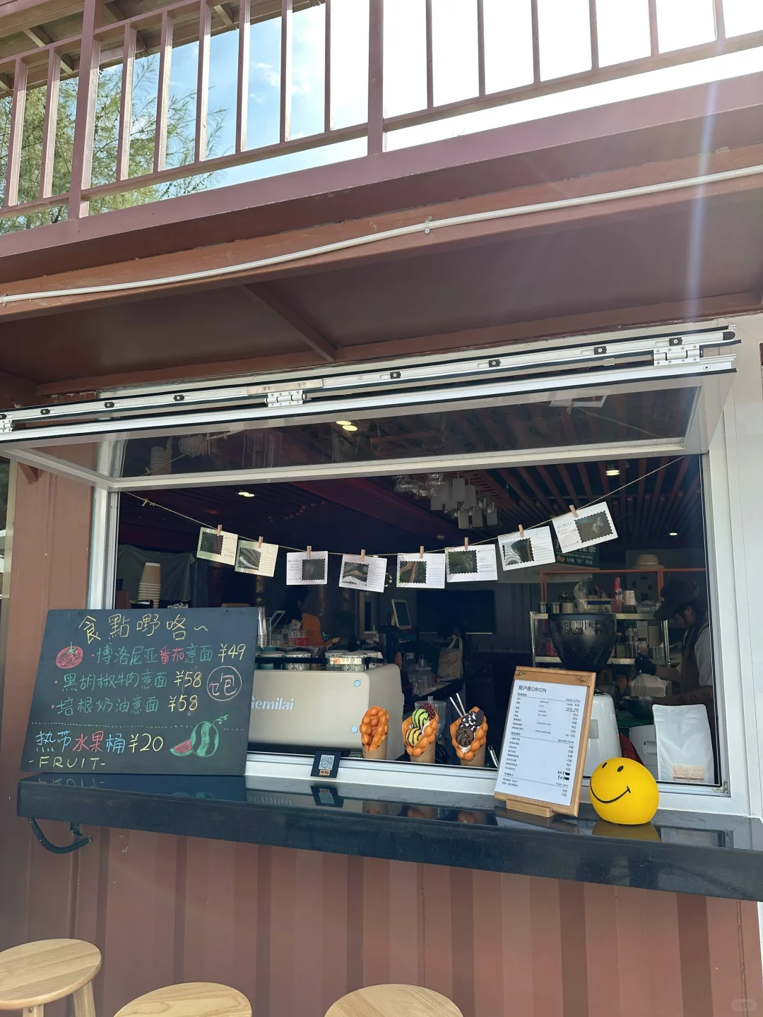 和朋友上山前在山脚下的咖啡店坐着等4点的太阳柔和些再上山