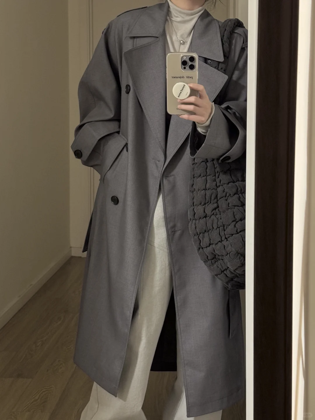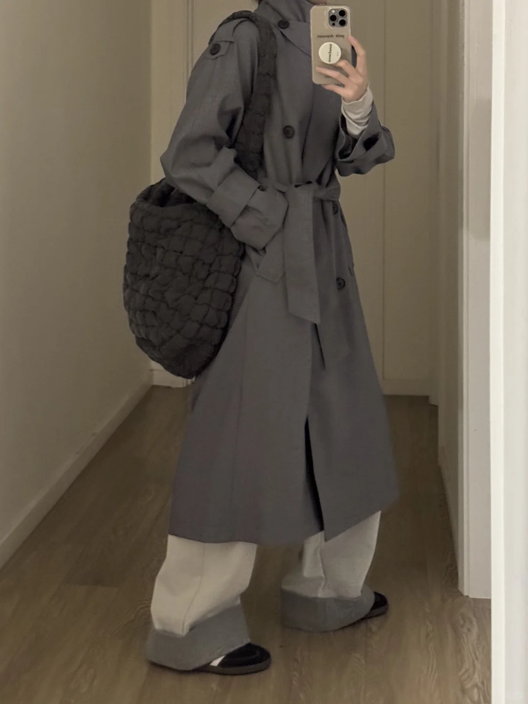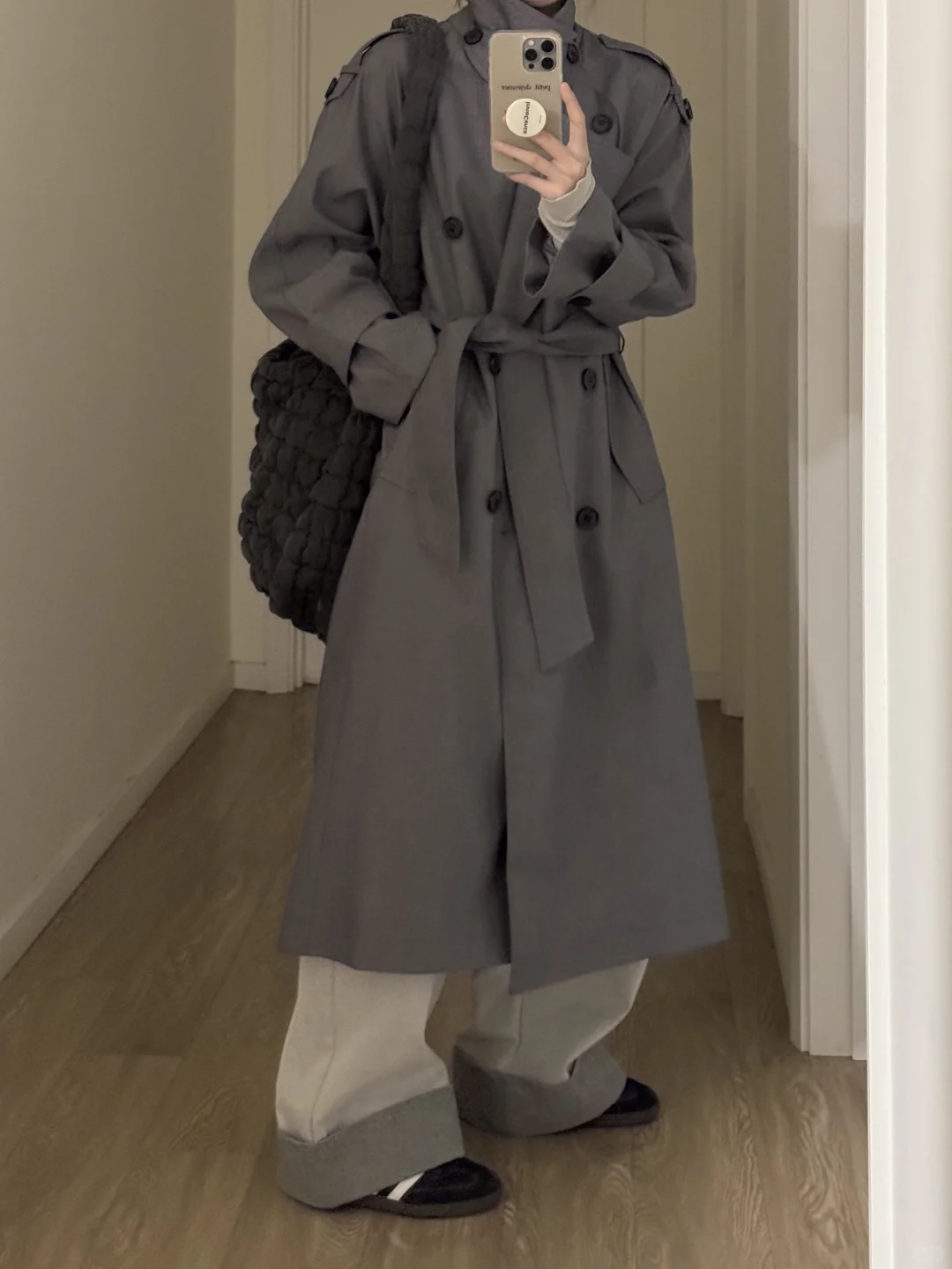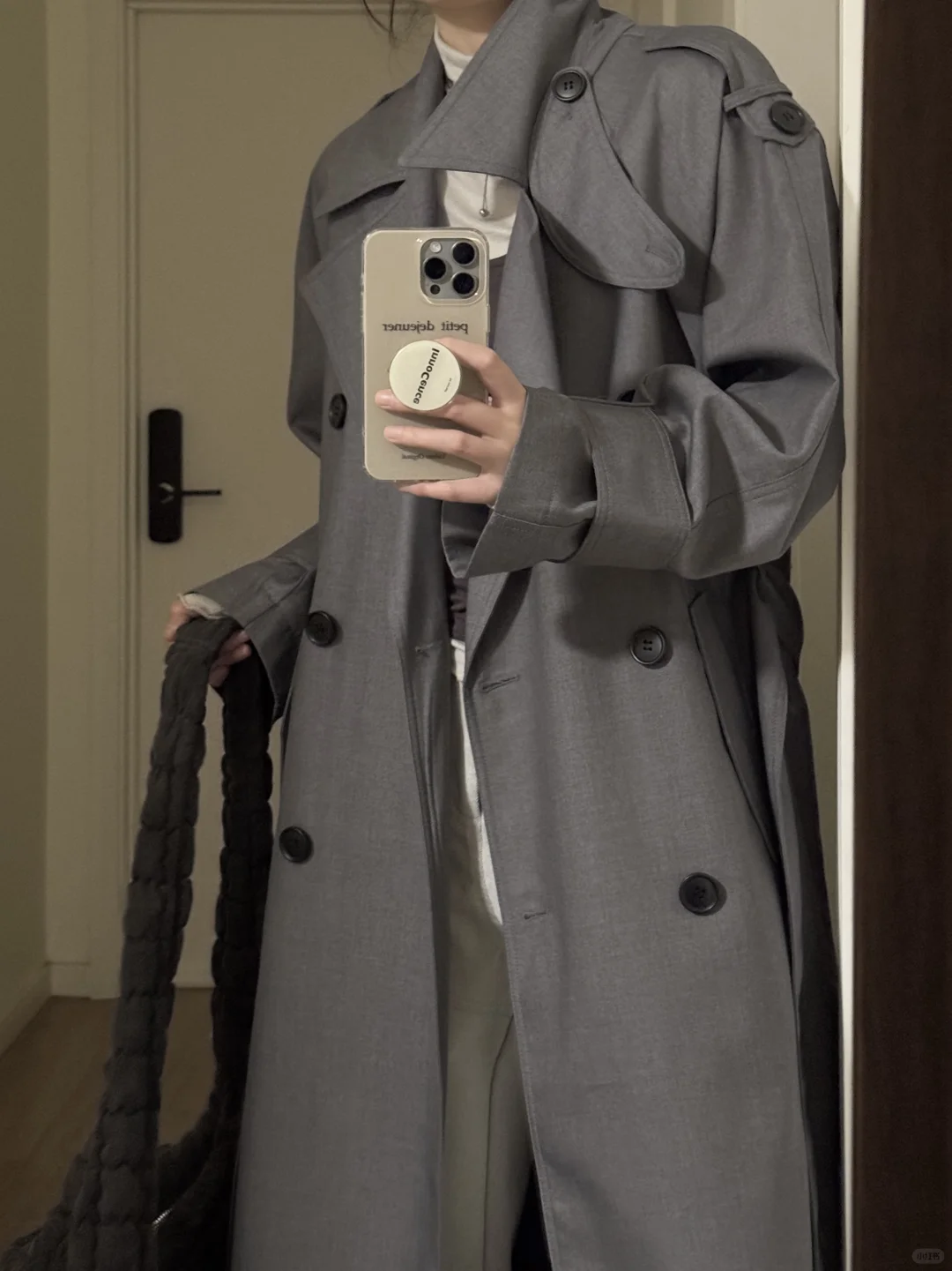 好秋冬韩系气质通勤灰色风衣叠穿🪙