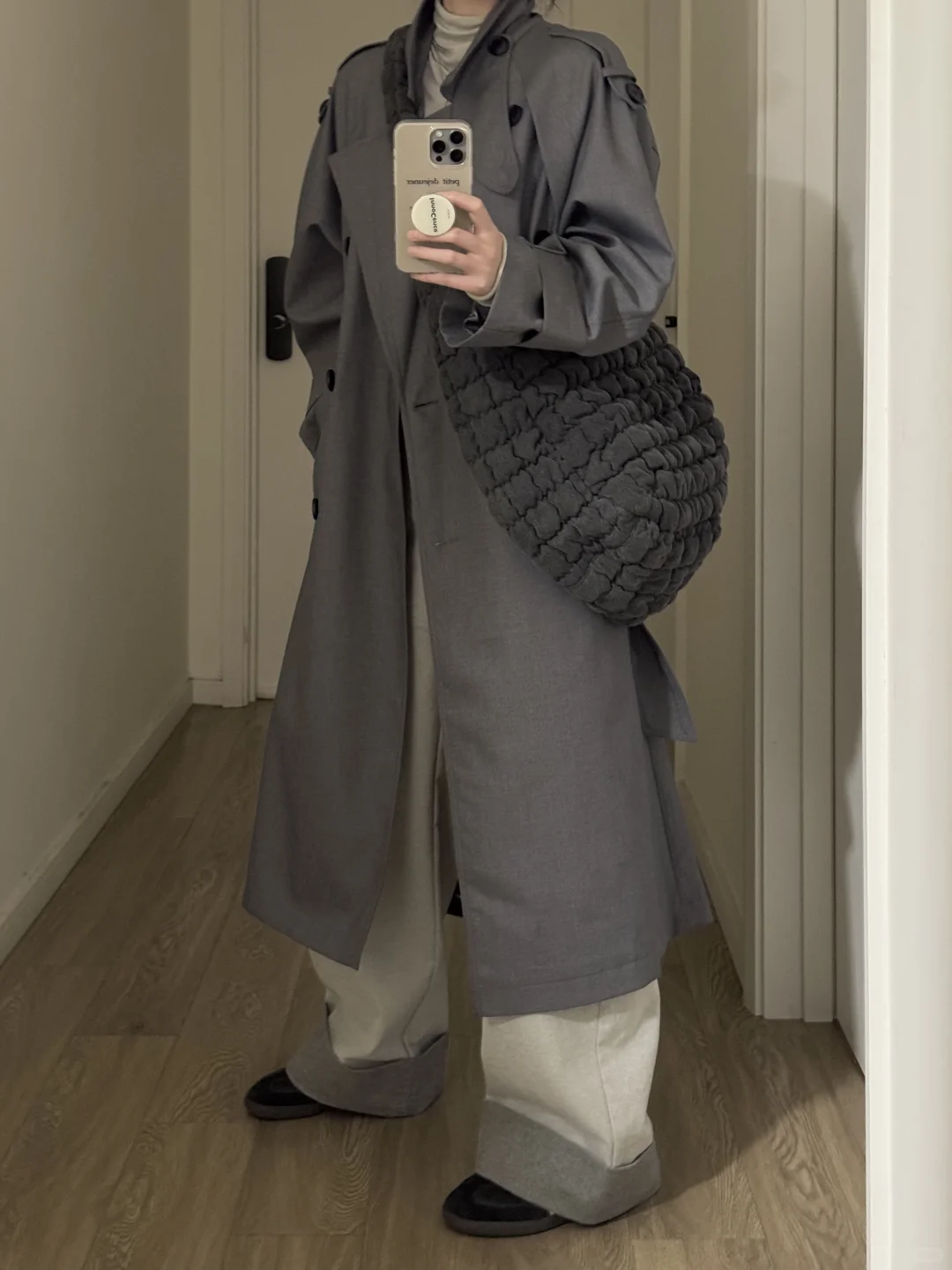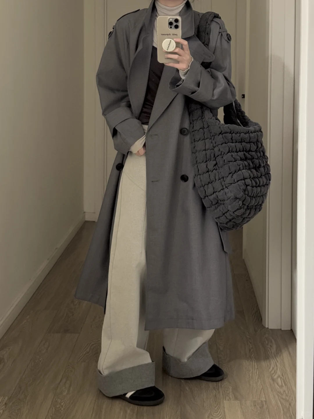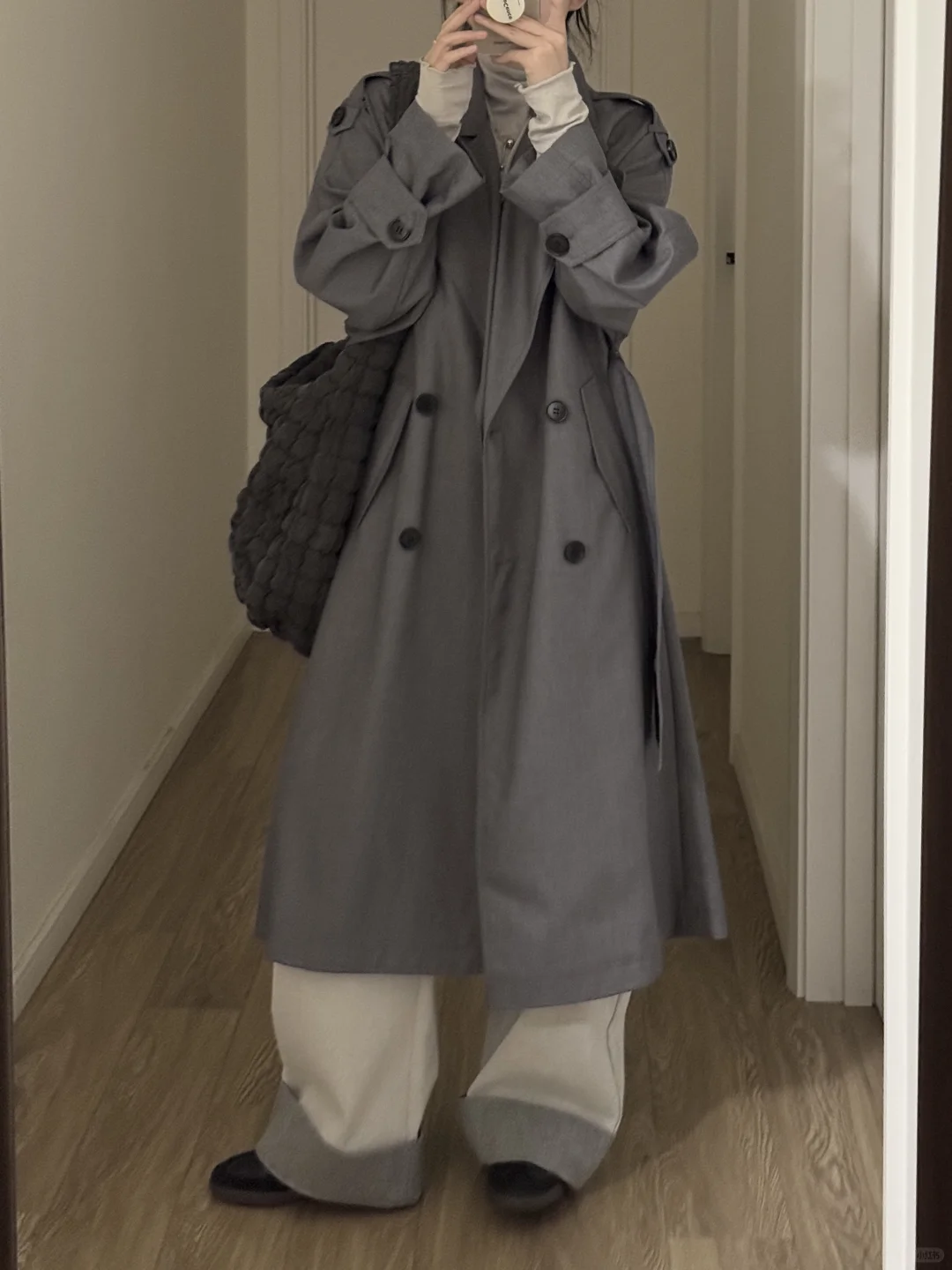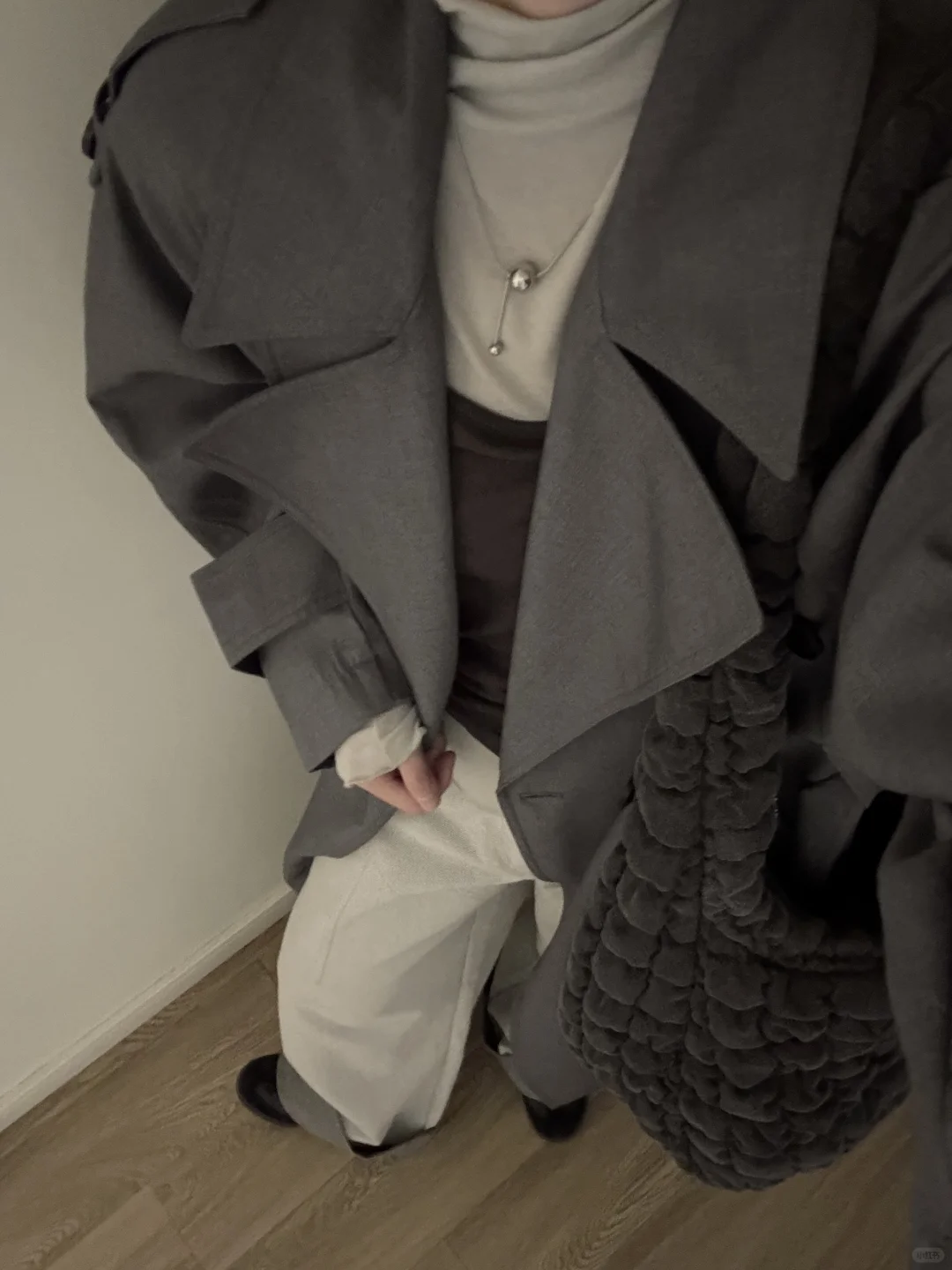 好秋冬韩系气质通勤灰色风衣叠穿🪙