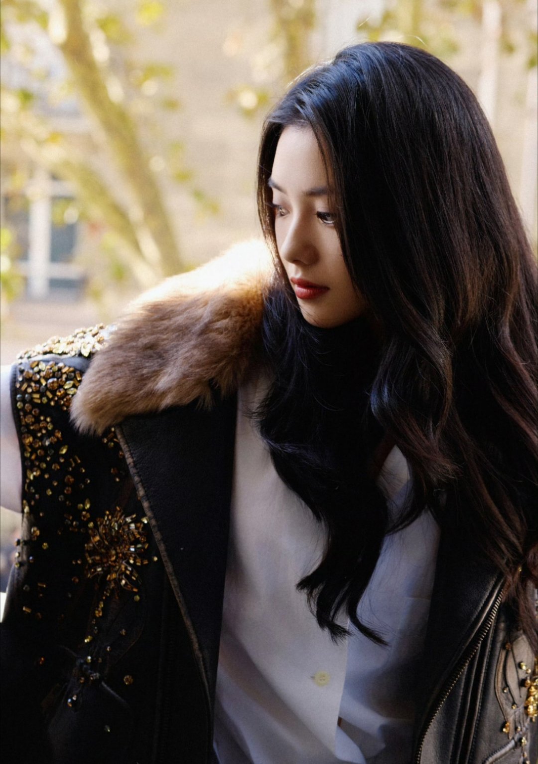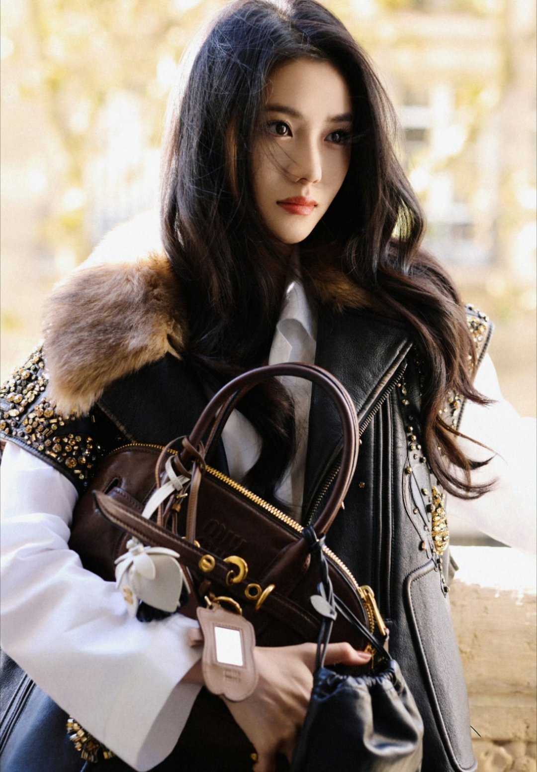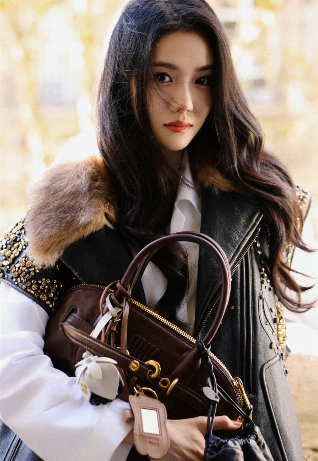 #杨紫成都活动#杨紫今日线下活动造型图,皮衣穿搭好酷好美。#杨紫[超话]#