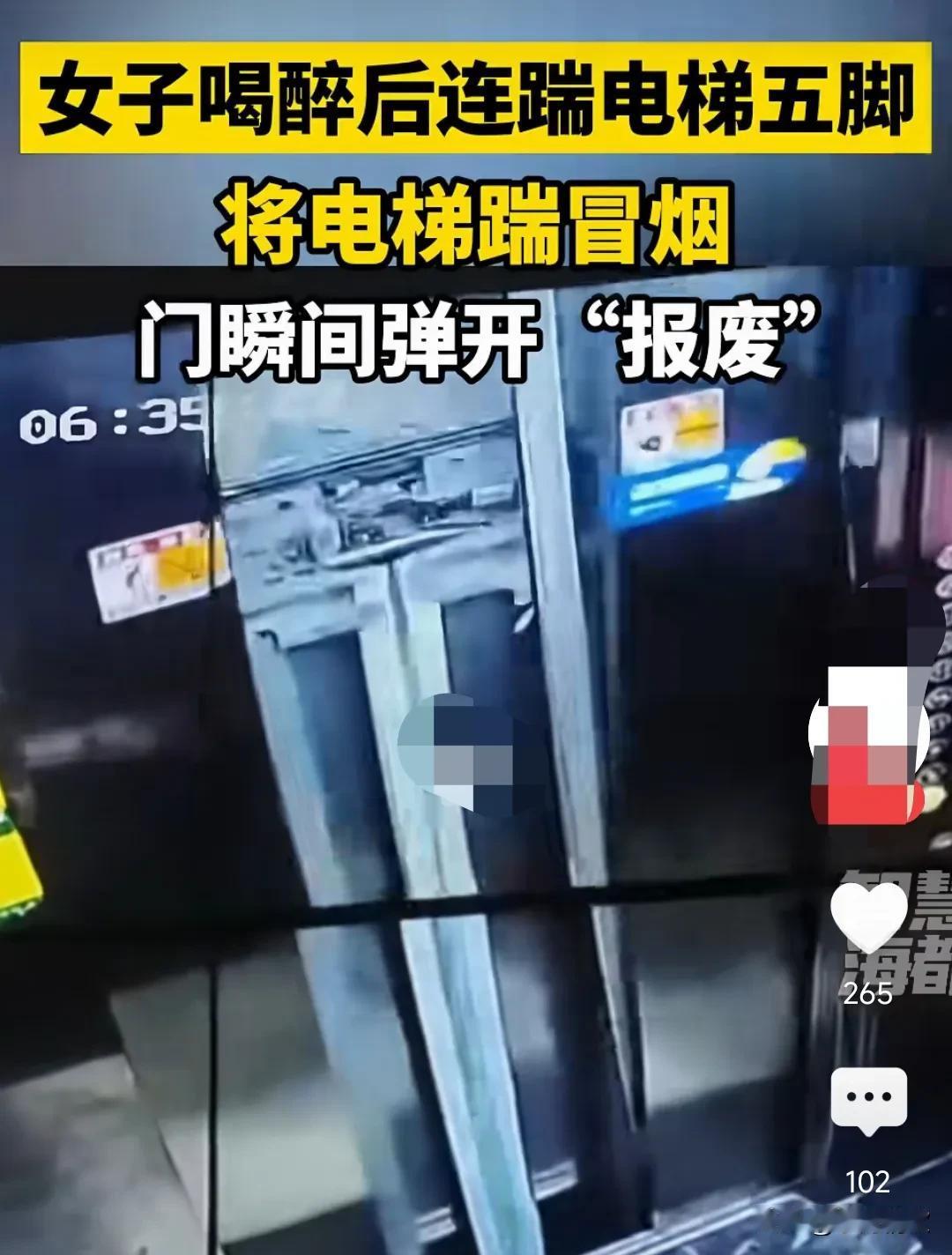 这女的这脚力也太厉害了吧,五脚竟然将电梯门给踢坏了。 9月27日浙江温州,一女子喝醉酒后,不知什么原因,对着电梯门连踹五脚,直接让电梯报废,这估计得赔不少钱了。 竟然踹冒烟了,怎么这么冲动? #女子喝醉后五脚把电梯门踹报废#