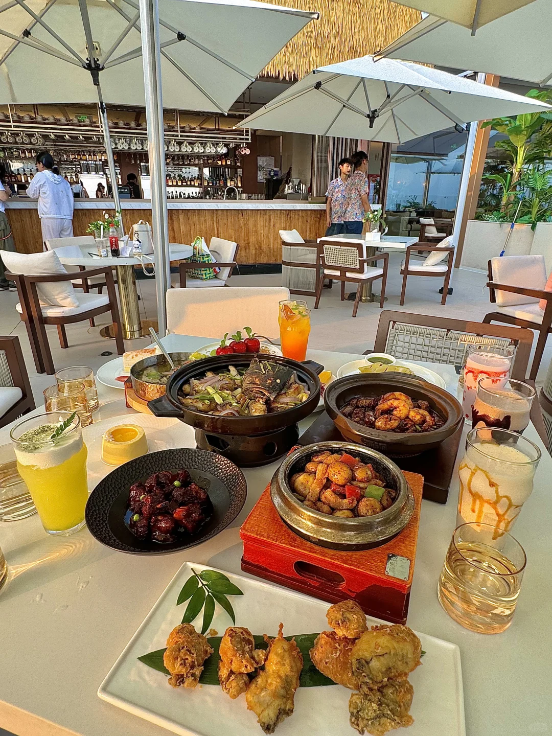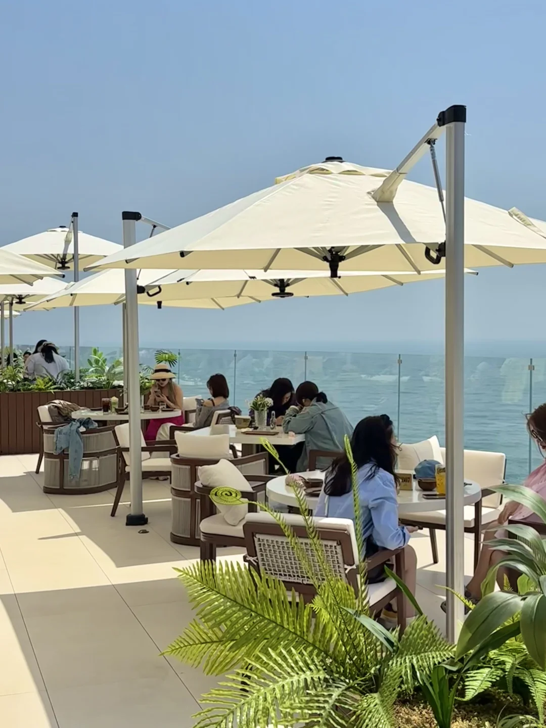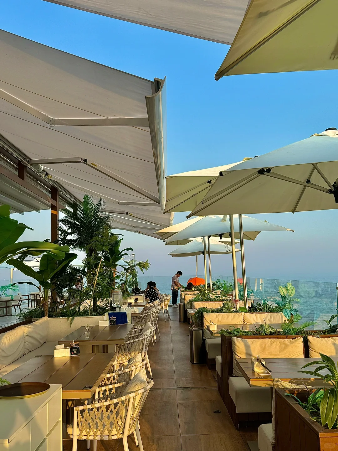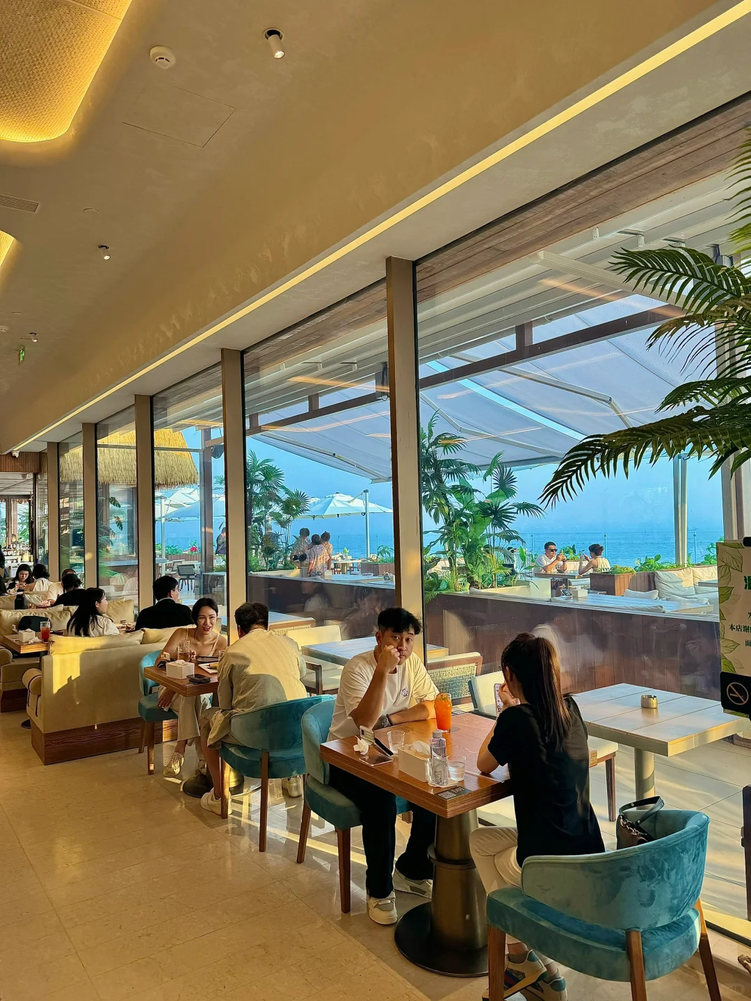 记住奥帆的这个山洞的旁边 上了电梯以后可以直接通往巴厘岛! 180°海岸线! 随手拍了照片发pyq还以为我去国外度假了🏖️ 推荐露台靠海边的位置 阳光洒在海边上波光粼粼的,太chill了! 吃完饭的话可以看夕阳🌇 人生moment又➕1了!!