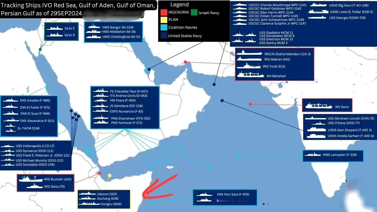 攻击结束了。居民被允许离开避难所,以色列国防军表示,在伊朗发动导弹袭击后,以色列人将能够立即离开他们的防空洞。有些人坐在那里,无需藏身…… 每次看到犹太人入侵他国的新闻,总会查一下中东附近海域(红海)、曼德海峡、阿拉伯海和霍尔姆斯海峡附近老美布置的战舰位置。 这是9月29日老美战舰在红海和波斯湾所处的位置,老美一直在为犹太人的侵略扩张保驾护航……