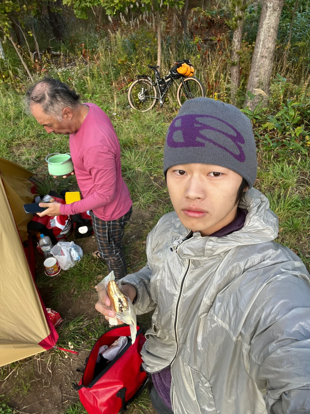 与他作为邻居搭营一晚,给他贴上了离群鸟的贴纸,成为离群鸟之巴西鸟,hhh,今日在骑行55+km后于留萌市与其道别,难忘的相遇。他要在这骑行60天,去包括东京、大阪之类的等等城市。下午他继续北上,我则选择在这个小城镇留下休息(最主要是因为手机什么都没电了)哈哈哈哈