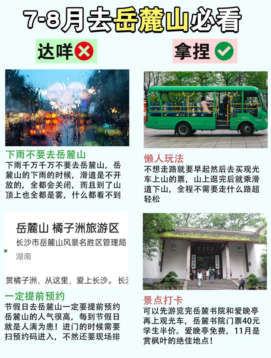 是不是有很多宝子第一次来长沙不知道该怎么游玩岳麓山❓我今天给大家出一个详细的游玩攻略,教大家在岳麓山⛰️应该做什么vs不应该做什么,速码‼️