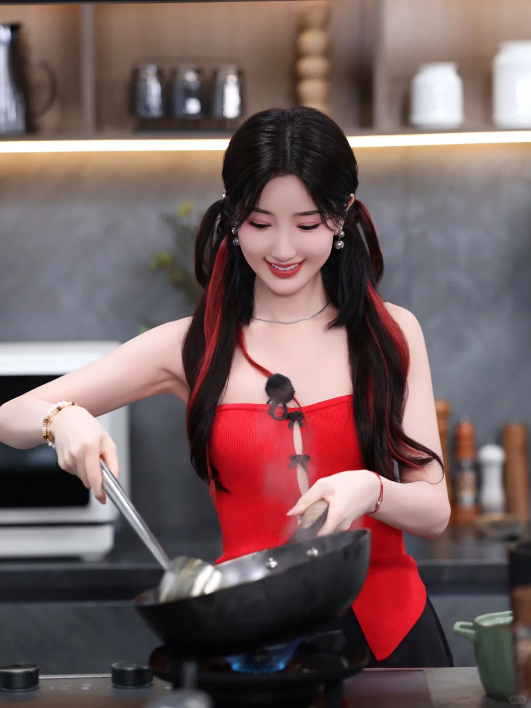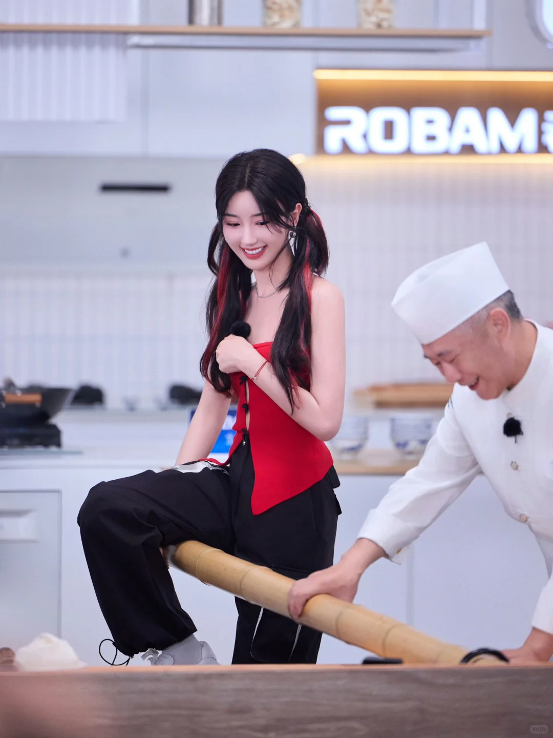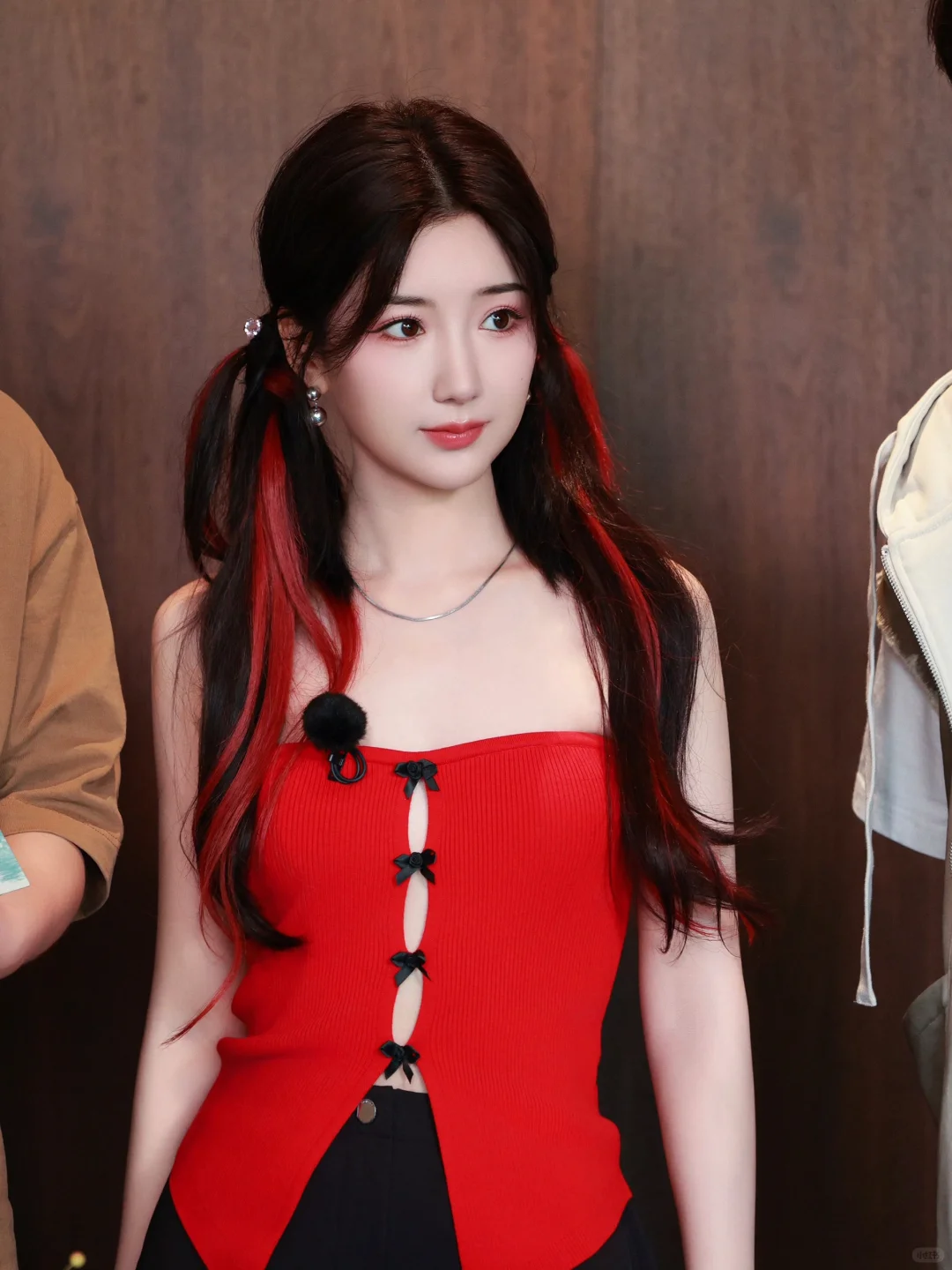 毛晓彤《听说很好吃》最新造型:红色抹胸工装裤,笑容永远这么明媚漂亮 素材来源于:毛晓彤工作室