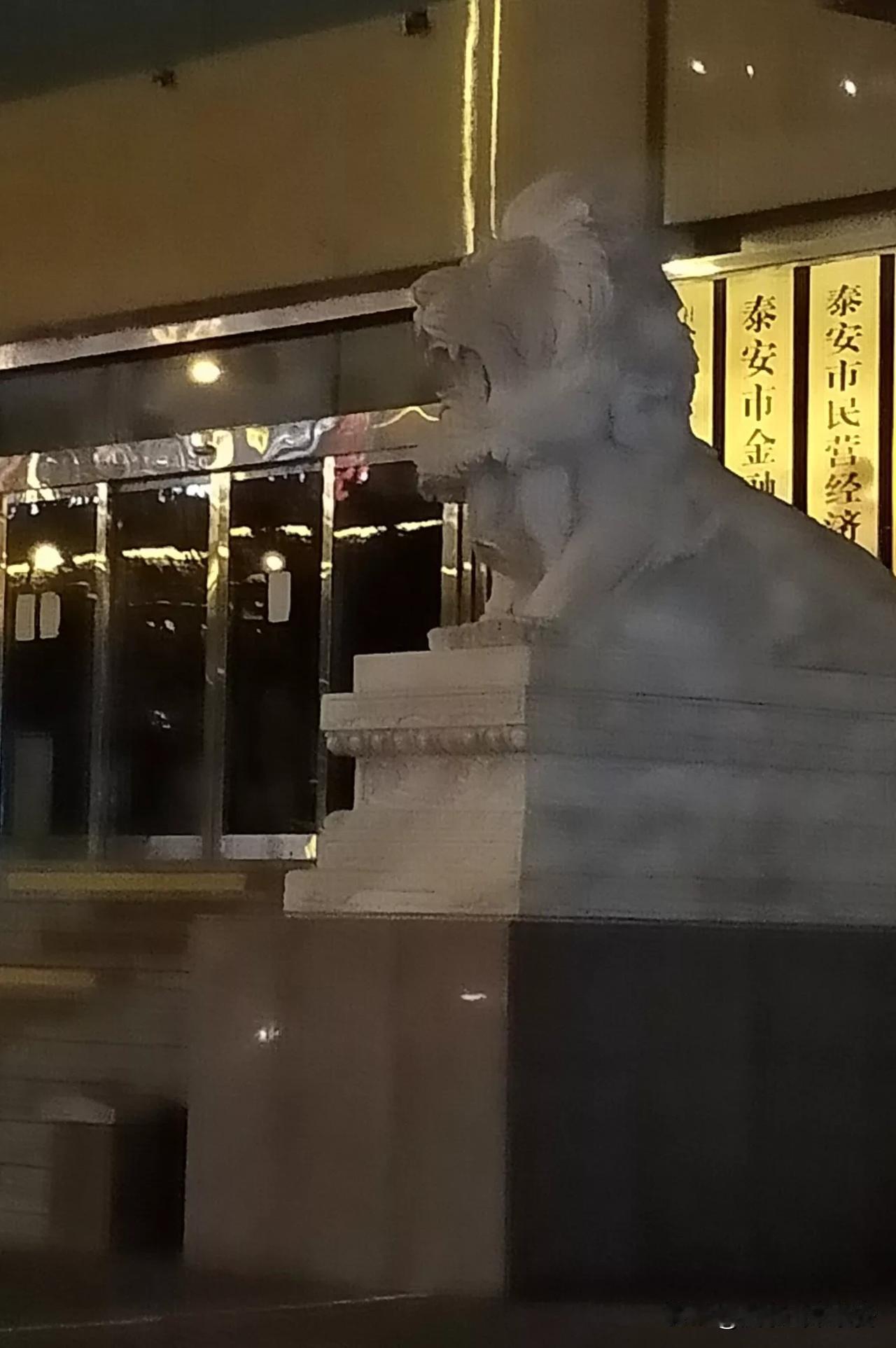 人家盖楼喜欢正南正北 ,泰安这家中国银行非要特立独行 , 一道利刃直指路对 过的交通银行与一家泰安知名的金融公司 ,于是 ,四只大狮子张开了大嘴.