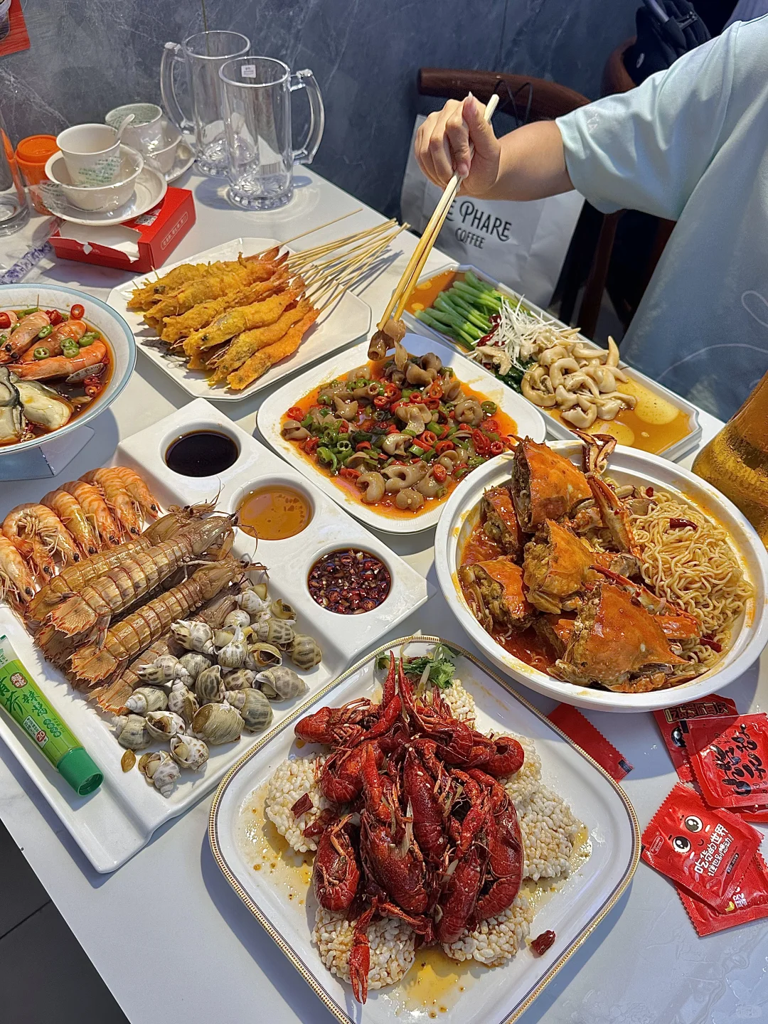 ✔️海鲜三拼 竹节虾、小海螺、皮皮虾三个拼在一起~太xuan亮了!!