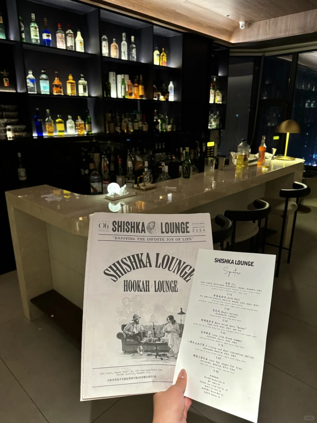 青岛的!!顶楼泳池水烟bar✖️shishka🍸🫧