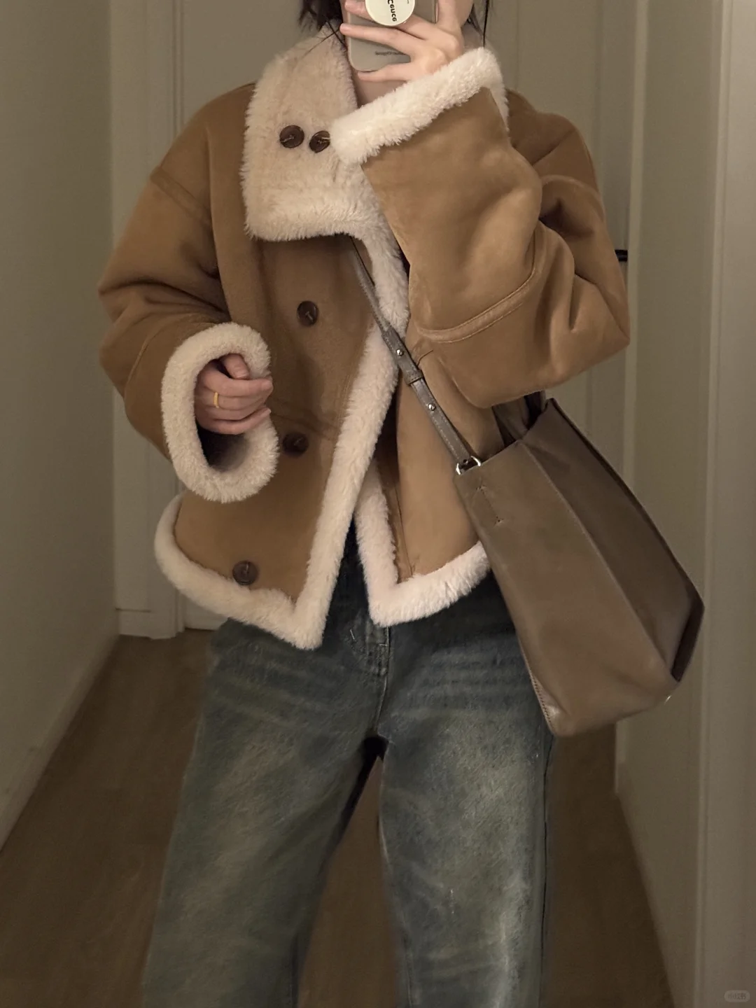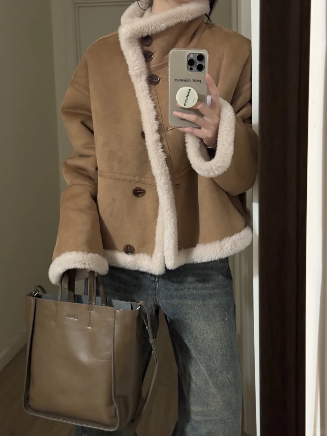 秋冬穿搭 早秋外套 通勤穿搭 实用穿搭 复古穿搭 羊羔毛外套 外套 美拉德休闲穿搭