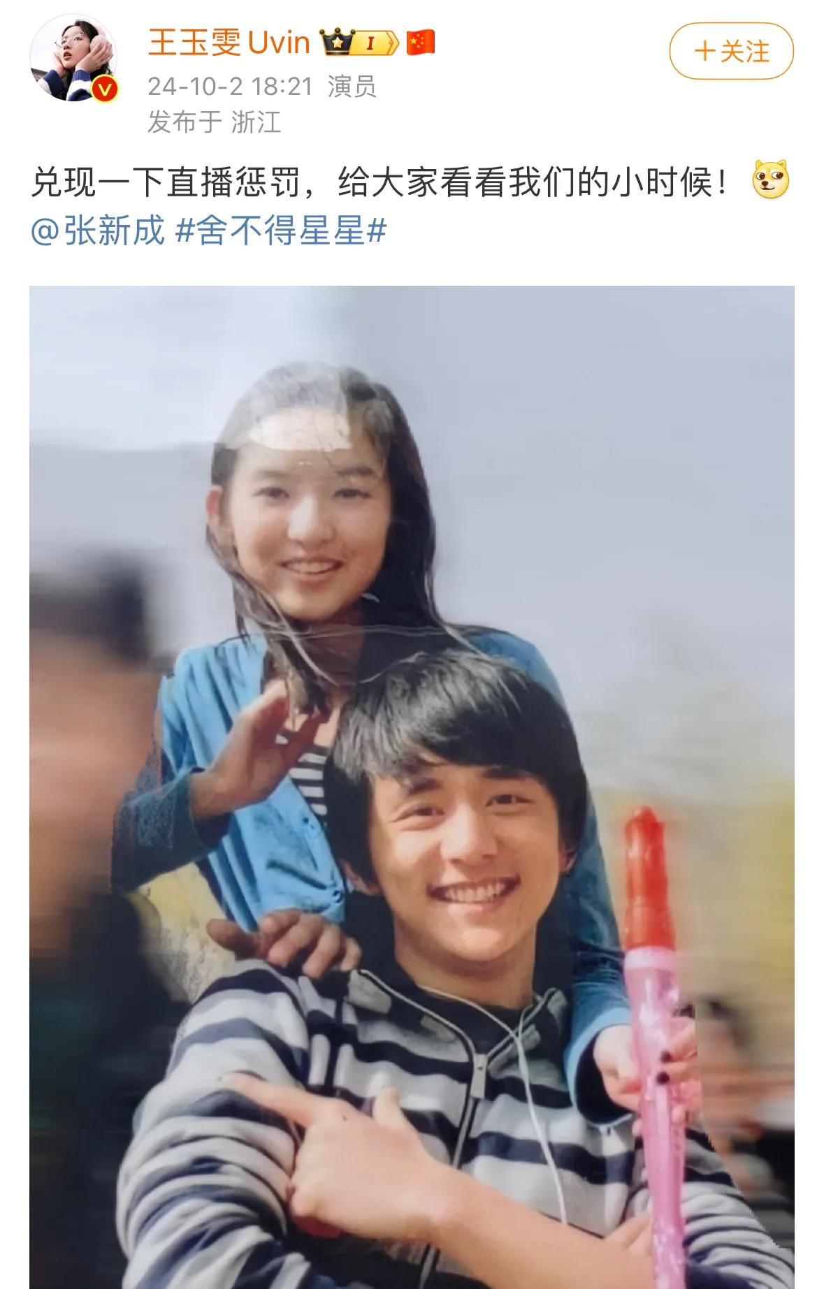 王玉雯发了和张新成小时候的照片,两个人是一个初中,也算是青梅竹马长大的,友谊深厚
