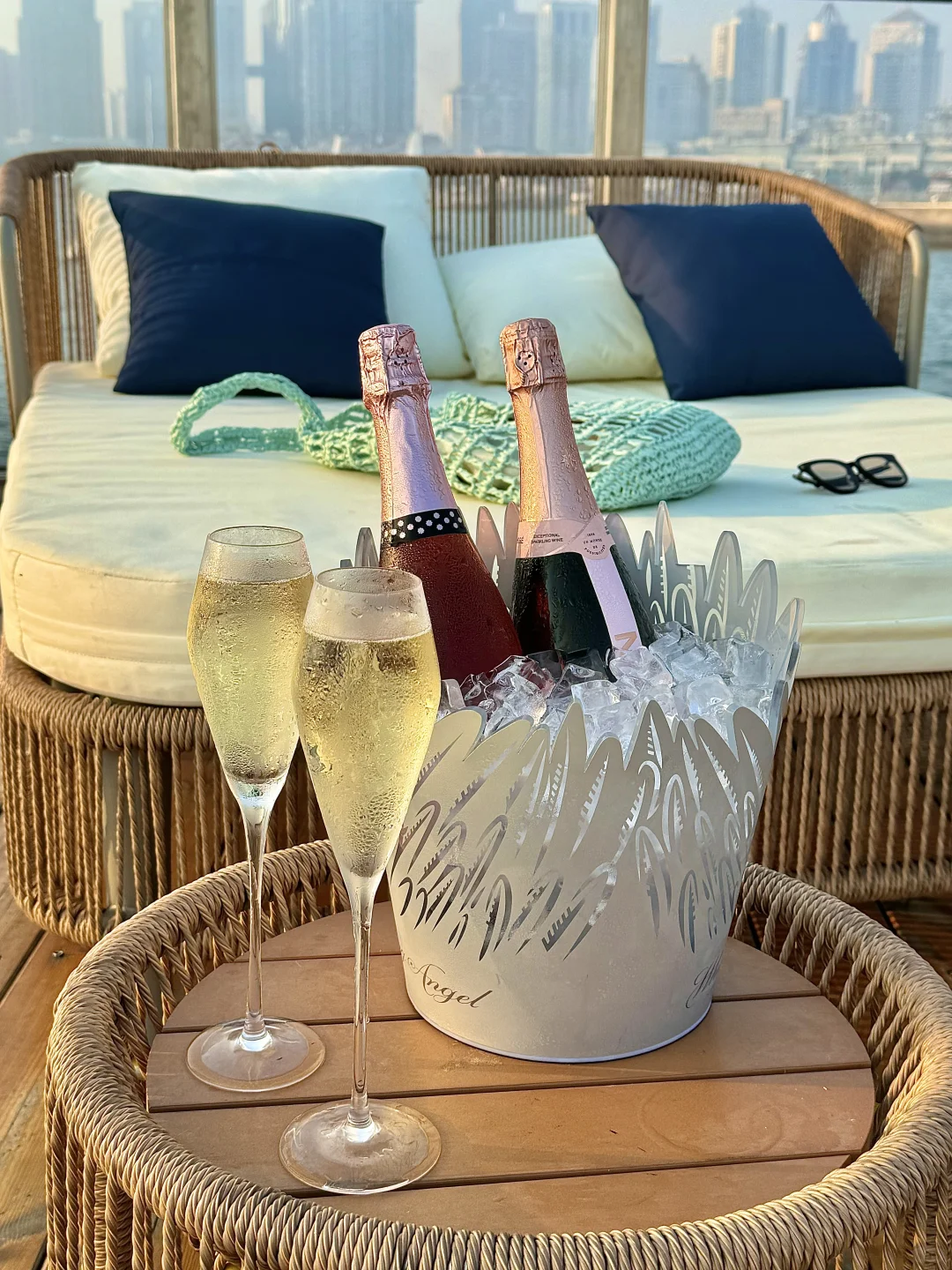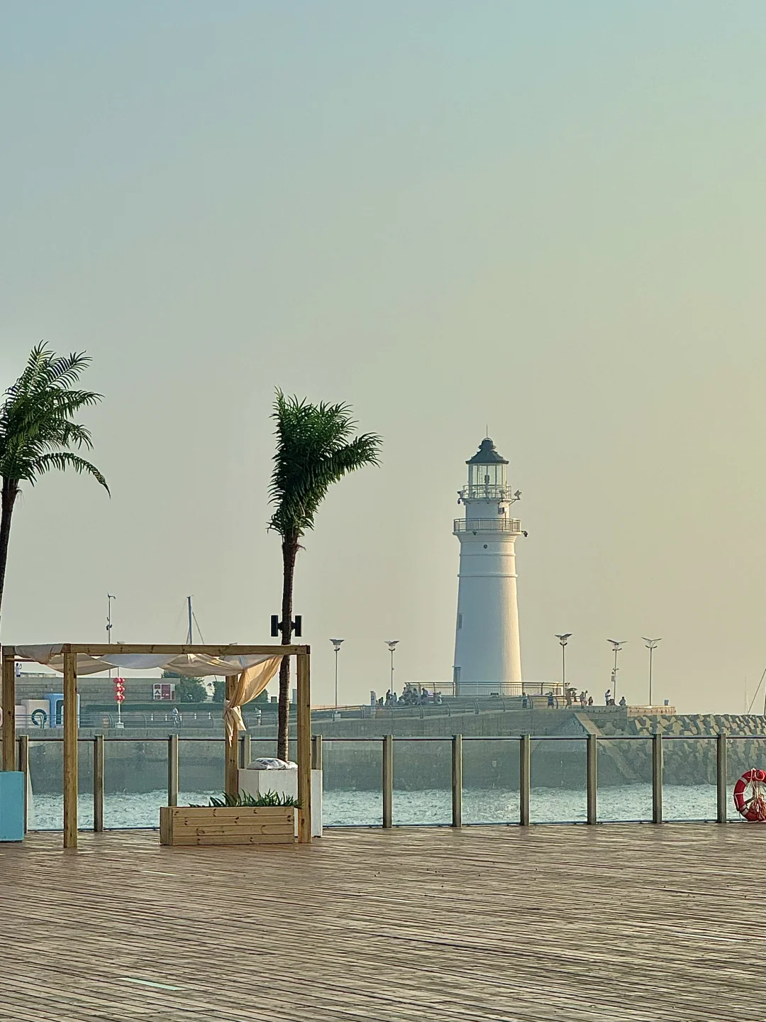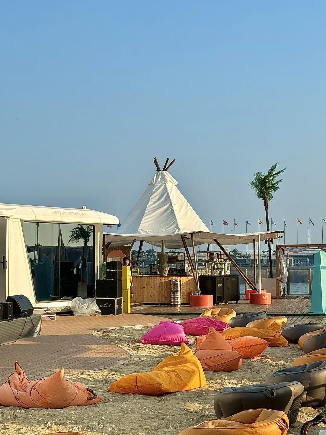 就在奥帆中心里面!! 真的超浪漫💕 可以躺着看日落, 从落日、蓝调再到灯光秀! 我去的这天是金黄色的落日!! 阳光洒在海面金灿灿的✨ 真的太有LA的感觉了~ 主打一个chill 晚上还有di舞台,人均也不高!! 下午茶两人不过百!!