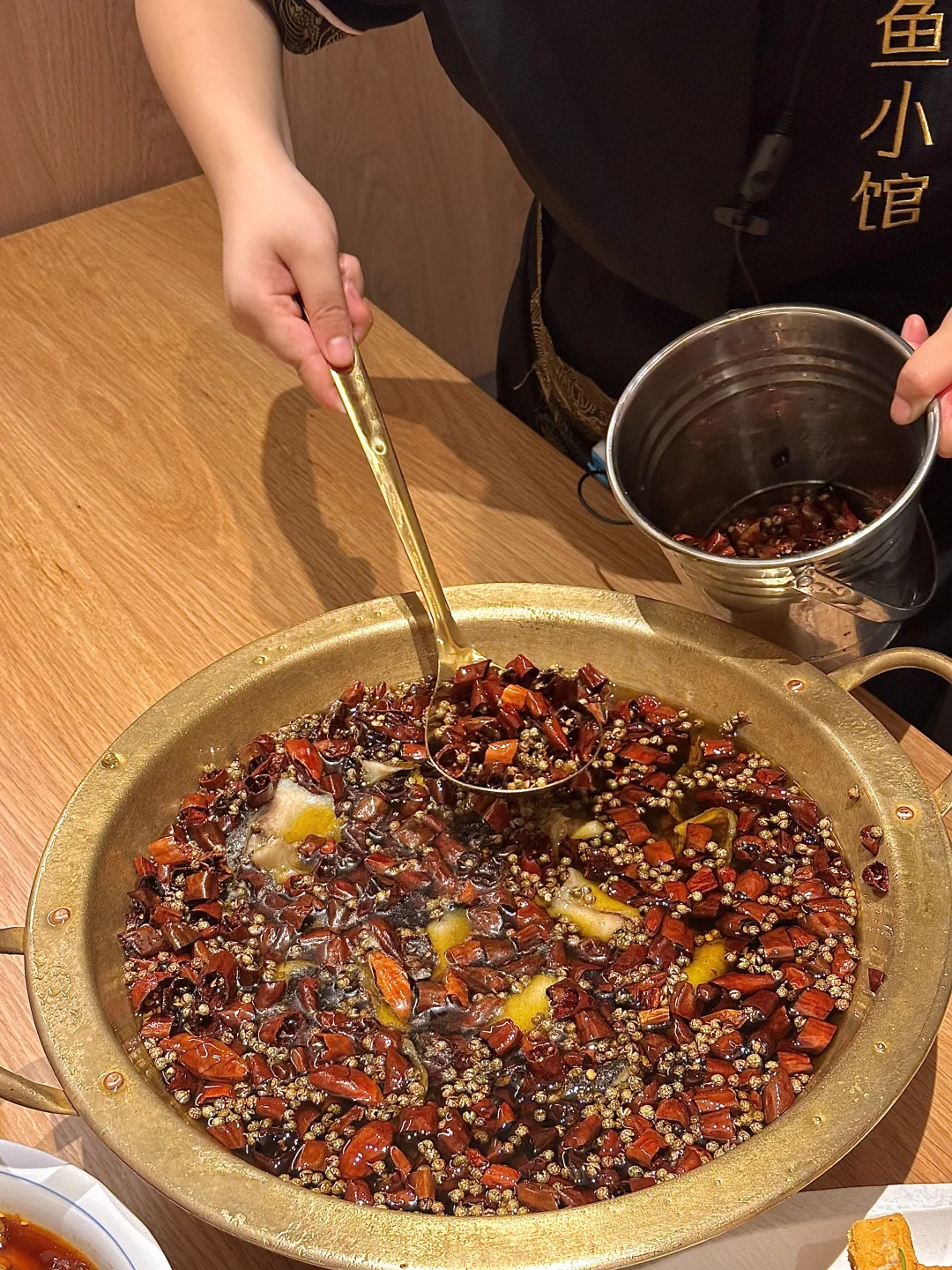 鱼小馆开新店了!! 没想到工作日的晚上室外都坐满了!! 他家真的jujuju好吃~ 尤其是沸腾黑鱼!!真的是必点! 端上来的时候油还在噼里啪啦跳, 麻椒和辣椒贼香!! 鱼肉口感很嫩,嘴里酥酥麻麻的好吃得停不下来!! 服务员还可以帮忙打成辣椒酱带走! 椒麻腰片的火候特别好,吃起来还是爽脆的!! 还有馋嘴蛙!!太下饭了!! 饭后再来一碗水果冰粉,清爽又解辣!