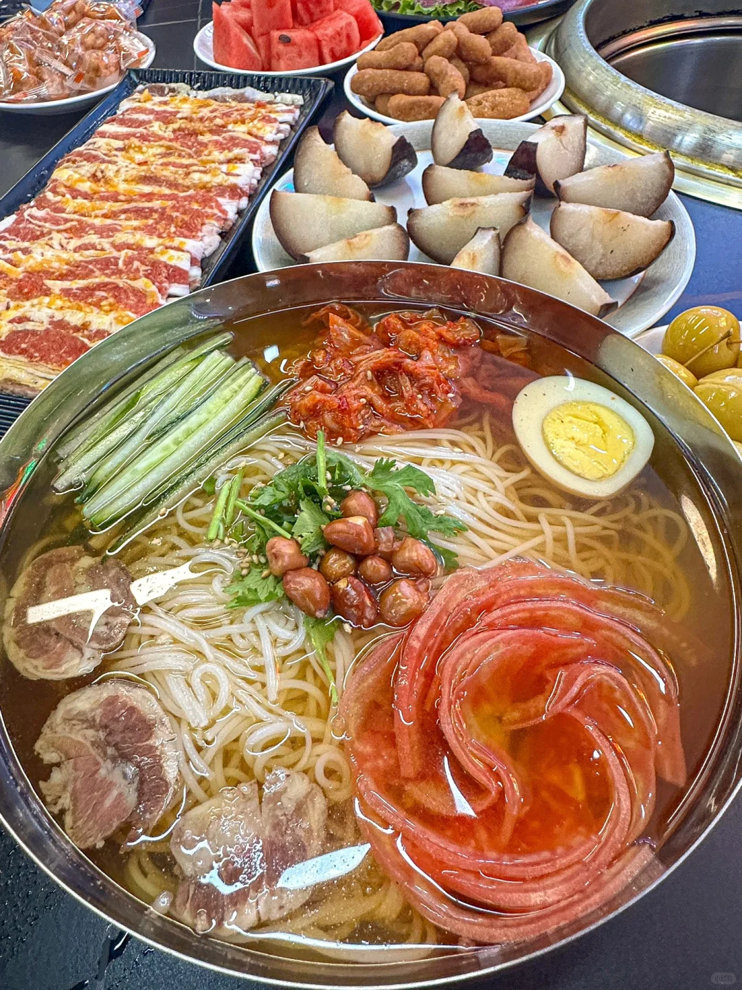 终于在市南也能吃上这口了!! 啊啊啊!! 跟我在东北吃的一模一样 真的好吃s了😭😭😭 原来老板自己就是齐齐哈尔人!! 怪不得做的这么正👍 而且店里的肉类都是现切现拌,贼新鲜! 酸菜五花肉的酸菜量超大的!! 烤完用生菜卷着吃真的嘎嘎香!! 东北大冷面,夏天最爱的就是这口!! 酸甜口,开胃又下饭! 还有牛心管、虾扯蛋和牛舌… 真的闭眼点也不会踩雷!! 一定还会来6刷的!! 📍:齐齐哈尔•热炭•烤肉(闽江路店)