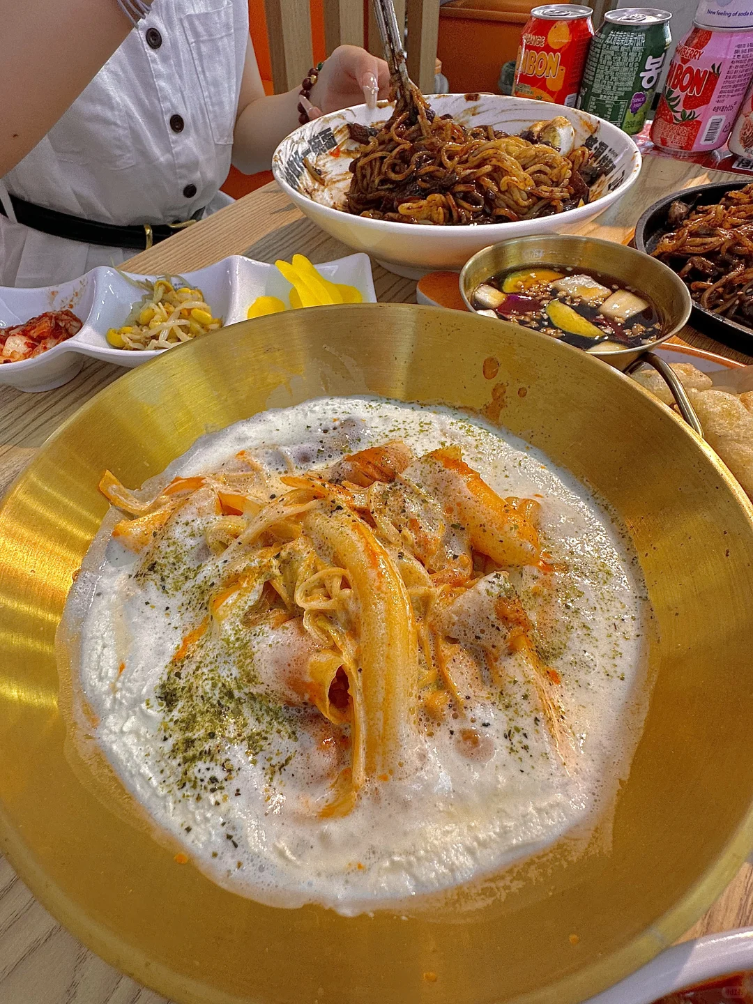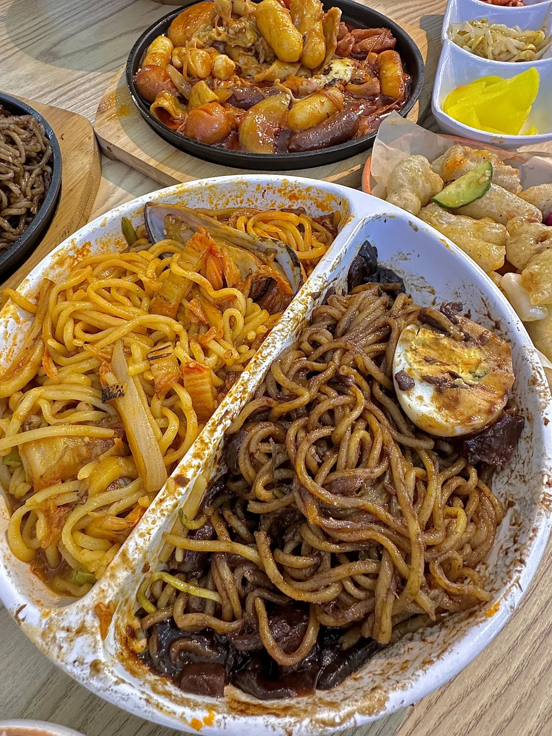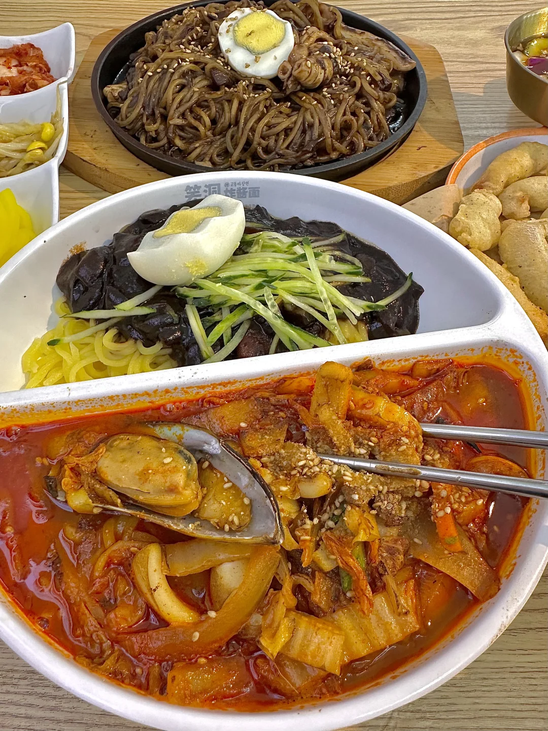 这家韩式炸酱面真的没有对手!! 从城阳跟到台东🥹🥹🥹 人均20+!! 韩式炸酱面甜甜的,黏糊糊的! 面条很劲道! 还是韩式半半碗🥣一次吃两种!