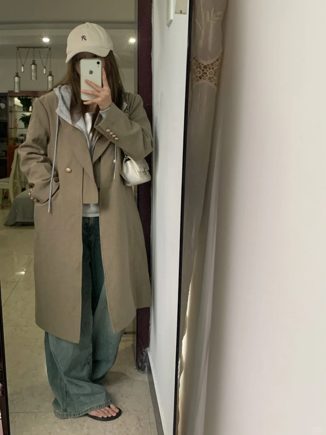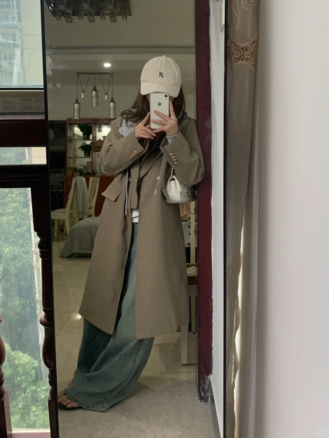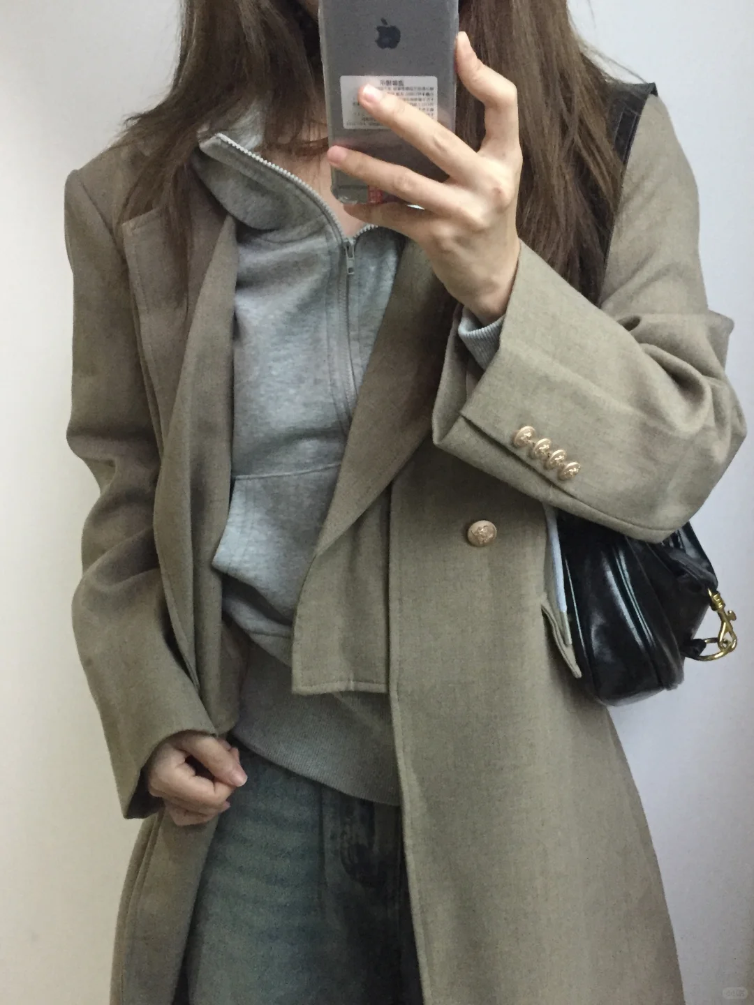是长款那种,很韩范儿。 搭配牛仔裤就很好看
