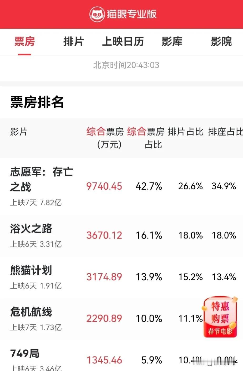 国庆长假电影票房飘红,你贡献了那部电影票? 截至到国庆黄金周第6天,电影票房超20亿了!其中引人注目的是,电影《熊猫计划》逆势走强,跻身全国票房前三甲;而《749局》则高开低走,跌出前三到了第五名!看来口碑效应还是明显影响到了票房的高低。 你国庆长假看电影没?看了哪部电影呢! #国庆潮玩攻略# #电影票房#
