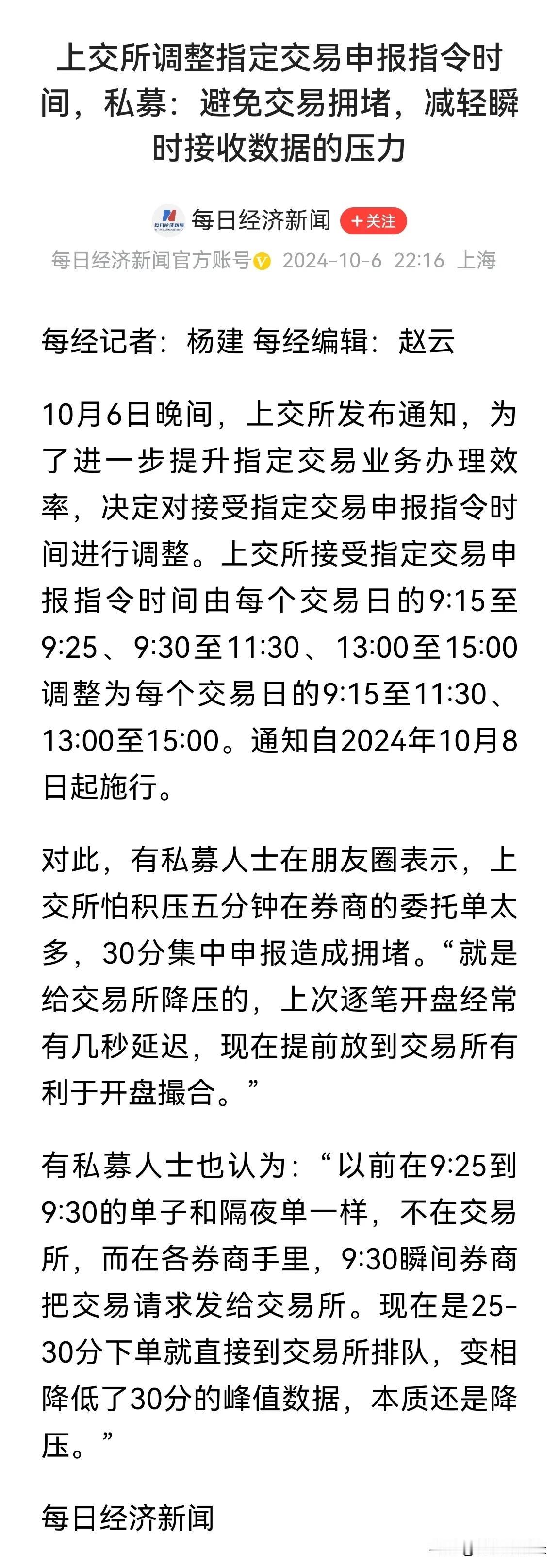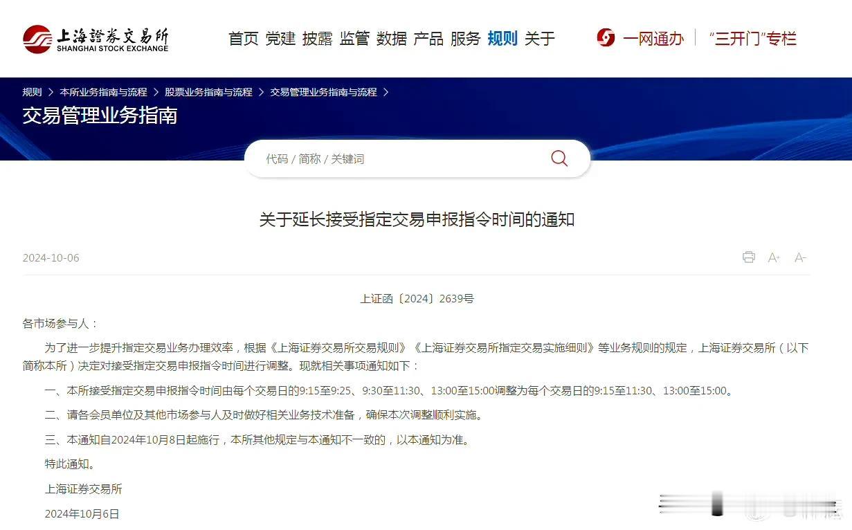 上交所果然打“补了”了,意思是说那个公告与交易时间安排无关,只与账户指定交易有关