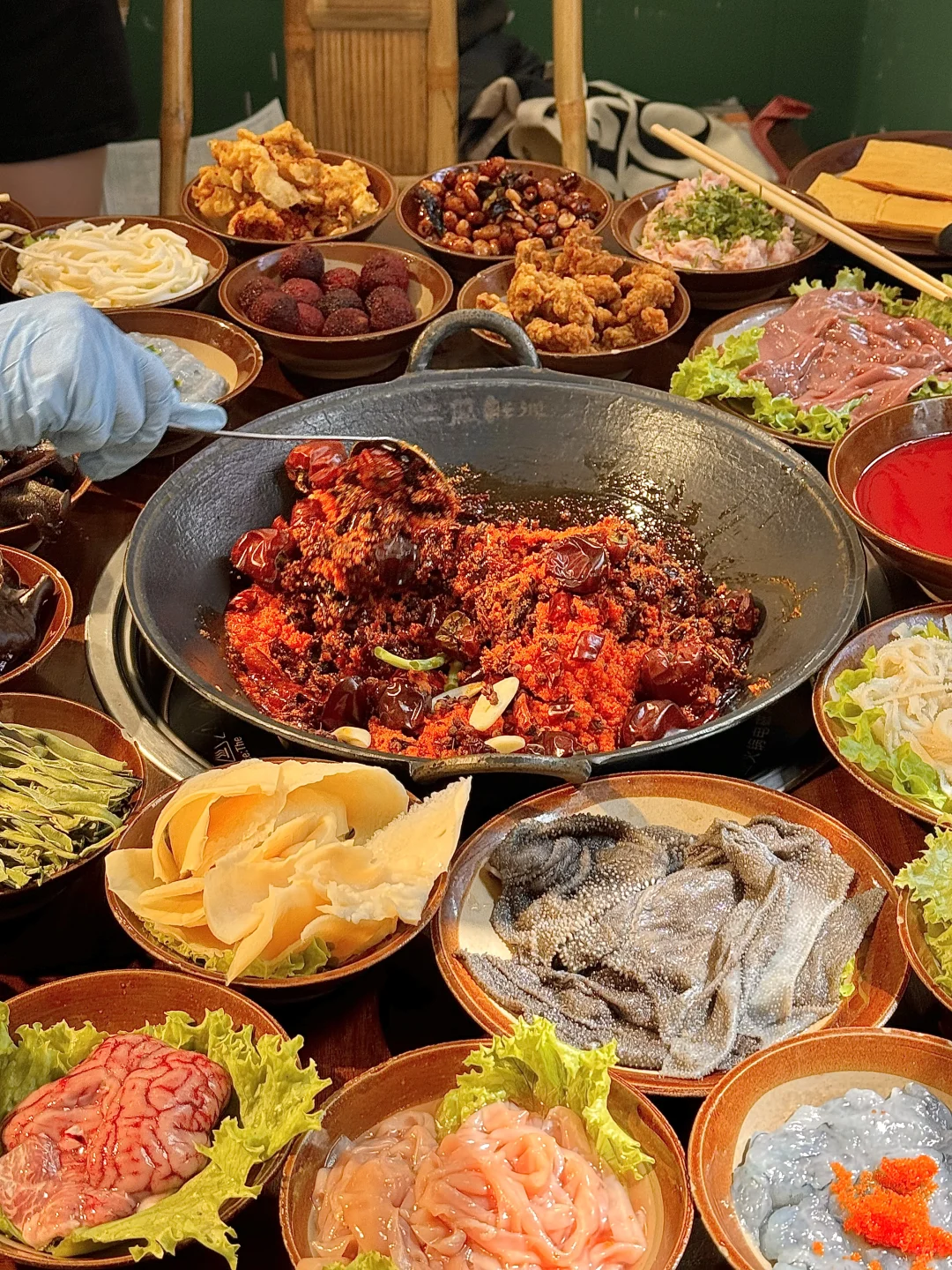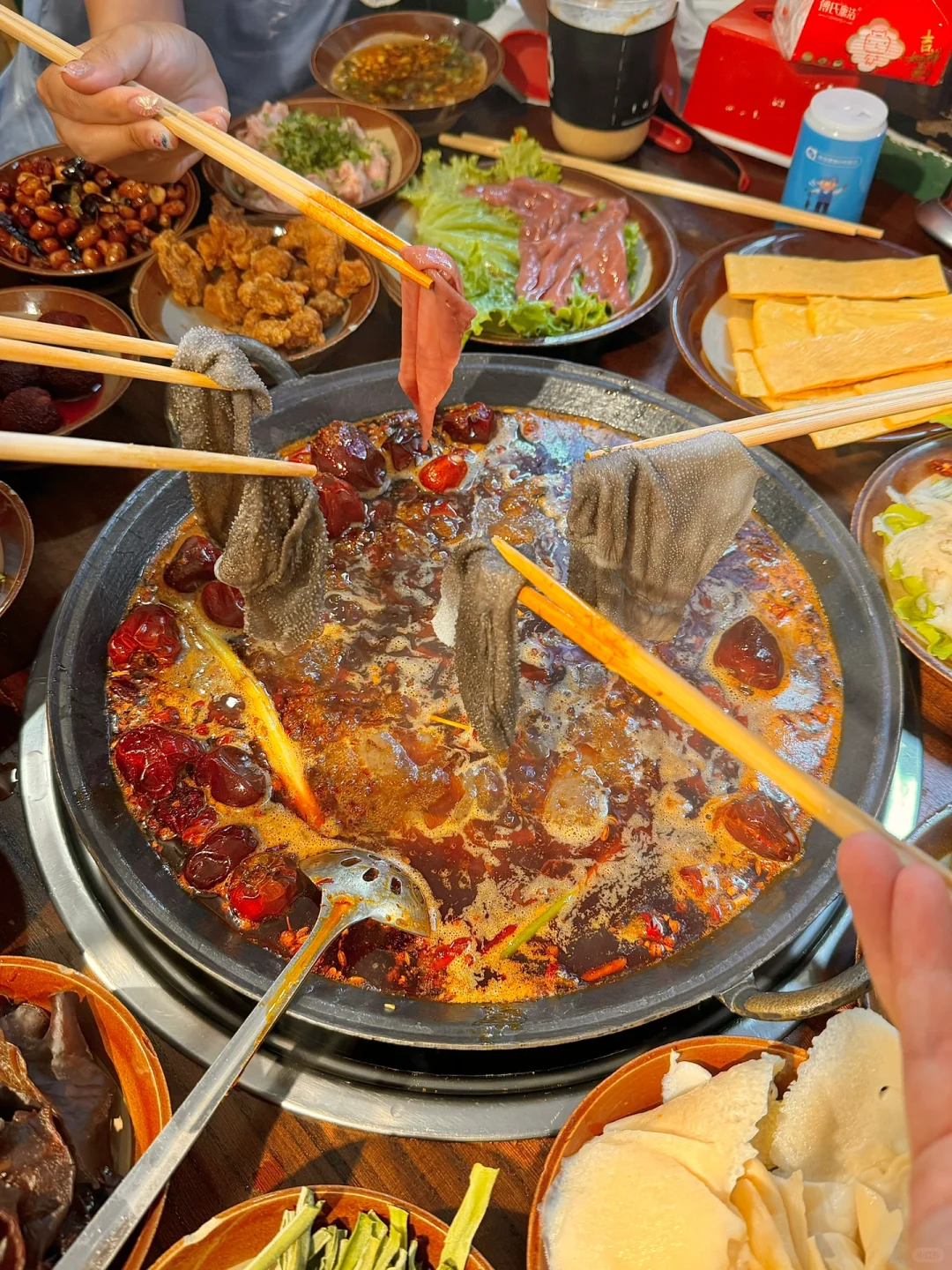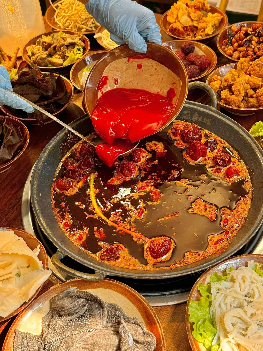 一家贼正的重庆火锅!! 锅底和我在重庆吃过的一模一样! 而且蚝油也一样不是主力调料~ 锅底用料真的足!! 爱吃辣的、人多的可以选7斤的红油!! 城阳还是第一家有7斤红油的锅吧!! 现场炒制真的贼香!! 人均7-80r左右~ 毛肚、鸭血、贡菜一定要点!! 中午满满的人!!记得早来~