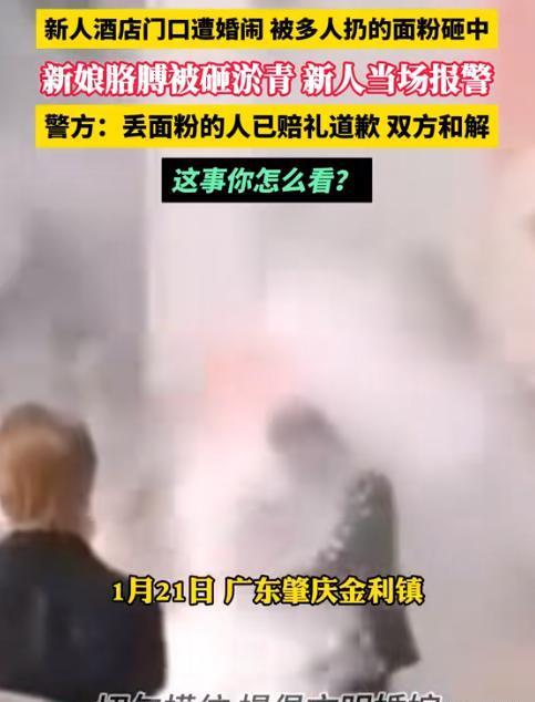 恶俗婚闹又上演!1月21日,广东一对新人在酒店门口遭遇婚闹,被多人扔面粉砸中,新娘胳膊被砸淤青,婚礼无法正常进行,一怒之下,新人当场报警!这还算得上是朋友吗?[微风] 又一起恶俗婚闹闹剧上演!就在1月21日,广东肇庆,一对新人在踏入婚姻殿堂的喜庆时刻,竟在酒店门口遭遇了不速之客——一群“好友”用面粉狂轰滥炸。新娘不幸中招,胳膊上留下淤青,整场婚礼的甜蜜氛围瞬间被打破,新人忍无可忍,直接拨打了报警电话。这哪是朋友干的事啊? 婚礼,本该是两颗心交织成梦,被祝福与喜悦包围的神圣时刻。但近些年来,咱们时不时就能看到些恶俗婚闹的新闻,简直是给这美好庆典添堵又添伤。古话说得好:“真朋友,淡如水;假交情,甜如蜜。”真正的朋友,应当是尊重对方,为对方加油鼓劲的,而不是借着婚礼的由头,搞些让人难堪甚至受伤的恶作剧。 这回在广东肇庆的事儿,就是活生生的例子。新人正满怀期待地站在酒店门口,准备踏上新生活的旅程,周围是亲朋好友的笑脸和祝福。可突然间,几个“热心”的哥们儿,手里提着装满面粉的袋子,就像打仗一样,一股脑儿地往新人身上招呼。转眼间,新郎新娘就变成了“雪人”,场面那叫一个混乱。新娘更是遭了殃,细嫩的胳膊上留下了伤痕,精心准备的妆容也毁于一旦,好好的婚礼就这么被搅和了。 最让人心寒的是,这些“肇事者”事后非但没有一丝歉意,反而还在一旁嬉皮笑脸,好像自己干了什么了不起的大事似的。这哪是祝福啊,分明是给新人的婚礼添堵嘛!遭遇这样的情景,新人愤怒不已,决定报警维权。但出乎意料的是,在多方劝说下,他们竟选择了和解。婚闹者虽已道歉,但网上舆论却炸了锅,大家觉得这事儿已触法,怎能轻易罢休?想想新娘,精心打扮迎大喜,却遭如此恶待,谁看了不心疼?网友们纷纷劝新人,这样的朋友还是疏远些好,免得再受伤。 说起来,这种恶俗的婚闹现象,全国各地都屡见不鲜。有的人甚至以此为借口,做出更过分的举动。就像江苏那场婚礼,有个男的竟然硬抱新娘要亲,新娘怎么反抗都没用。还有更过分的,趁新娘不备,拍她屁股,说是风俗能辟邪。可民政局都说了,这哪门子风俗啊?婚庆公司也一头雾水。 恶俗婚闹,真是害人不浅。它不光搅了婚礼的喜庆,还给新人带来身心伤害。小孩子都懂的道理,男女之间得有分寸,这是基本礼仪。可有些人,就借着婚闹的名头,干些龌龊事。等到受害者生气报警了,他们又开始装无辜,说什么只是开个玩笑。这种行径,真是让人恶心,还败坏了社会风气。婚礼上,开点小玩笑增添气氛挺好,但可别忘了,这些玩笑得有分寸。咱们不能让它们成了恶搞的借口,也别拿传统习俗当挡箭牌,胡作非为。咱们得一块儿站出来,对那些低俗过分的婚闹说“不”,坚持社会公德,给新人送上真心实意的祝福。说到底,婚礼嘛,是两个人爱情的美好见证,可不是让新人受委屈的场合。 ### 小贴士:这里聊的是婚礼上那些不太好的现象,有些信息是从网上看到的。要是您觉得这说到了谁,让您不舒服了,赶紧联系我,咱们撤掉。当然,也欢迎您来聊聊您的想法,一起交流交流。
