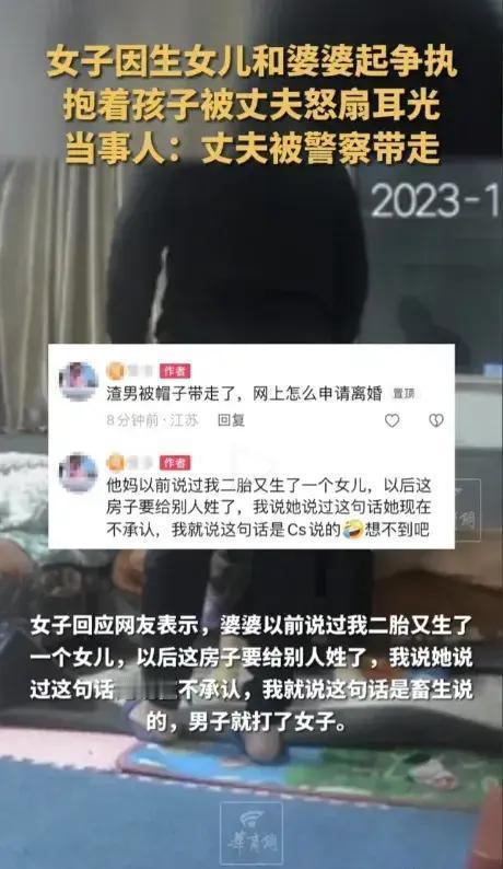 2023 年 12 月 6日,江苏一女子没要彩礼远嫁,连生俩女儿后,被婆婆指责,忍无可忍与婆婆发生争执,结果抱着孩子被丈夫怒扇耳光,后来怎样了? ### 引子新篇 咱们现在身处一个日新月异的时代,但你知道吗?有些老旧的观念,就像老树皮上的硬疙瘩,怎么也抠不掉。2023年的尾巴上,12月6号那天,江苏的陈女士,用她自己的故事,给咱们上了一课:就算社会进步得再快,有些女孩子还是得面对不少不公平的事儿。 老话讲得好:“人生就像照镜子,你笑它也笑,你哭它也跟着你难过。”陈女士的故事,就像是那面最真实不过的镜子,照出了生活中的那些不如意和辛酸。那么,这位了不起的女士后来咋样了呢?咱们继续往下瞧。 ### 故事展开 陈女士,她可不是个普通人。面对那些不公平,她没选择沉默,而是勇敢地站了出来,用自己的行动告诉世界:女性,也能在风雨中挺直腰板,活出自己的精彩。她的故事,就像是一股清流,冲破了那些陈规陋习的束缚,让人眼前一亮。 你想象一下,如果每个人都像陈女士这样,敢于面对不公,勇于发声,那我们的社会该有多美好啊!虽然道路坎坷,但正是这些勇敢的“第一步”,让我们离那个更加公平、更加和谐的世界又近了一步。 至于陈女士后来怎么样了?嘿,那还用说吗?她用自己的行动赢得了尊重,也激励了无数同样在奋斗中的女性。她的故事,就像一盏明灯,照亮了前行的道路,让人们在黑暗中也能找到方向。在2023年12月6日,网络上流传开了一段视频,内容让人揪心不已。画面中,陈女士和她丈夫发生了激烈的争吵,情绪激动之下,丈夫竟然动手打了她,而那时,她正紧紧抱着他们年幼的女儿。这一幕触动了无数人的心弦,引起了广泛的热议。 说起来,陈女士和丈夫的爱情故事原本是美好而纯粹的。他们是通过自由恋爱走到了一起,感情深厚,彼此深爱。但在谈婚论嫁的时候,陈女士做出了一个勇敢的决定——她不顾传统习俗,选择了零彩礼远嫁。虽然周围的朋友都劝她三思而后行,但陈女士坚信自己的爱情能够战胜一切困难。