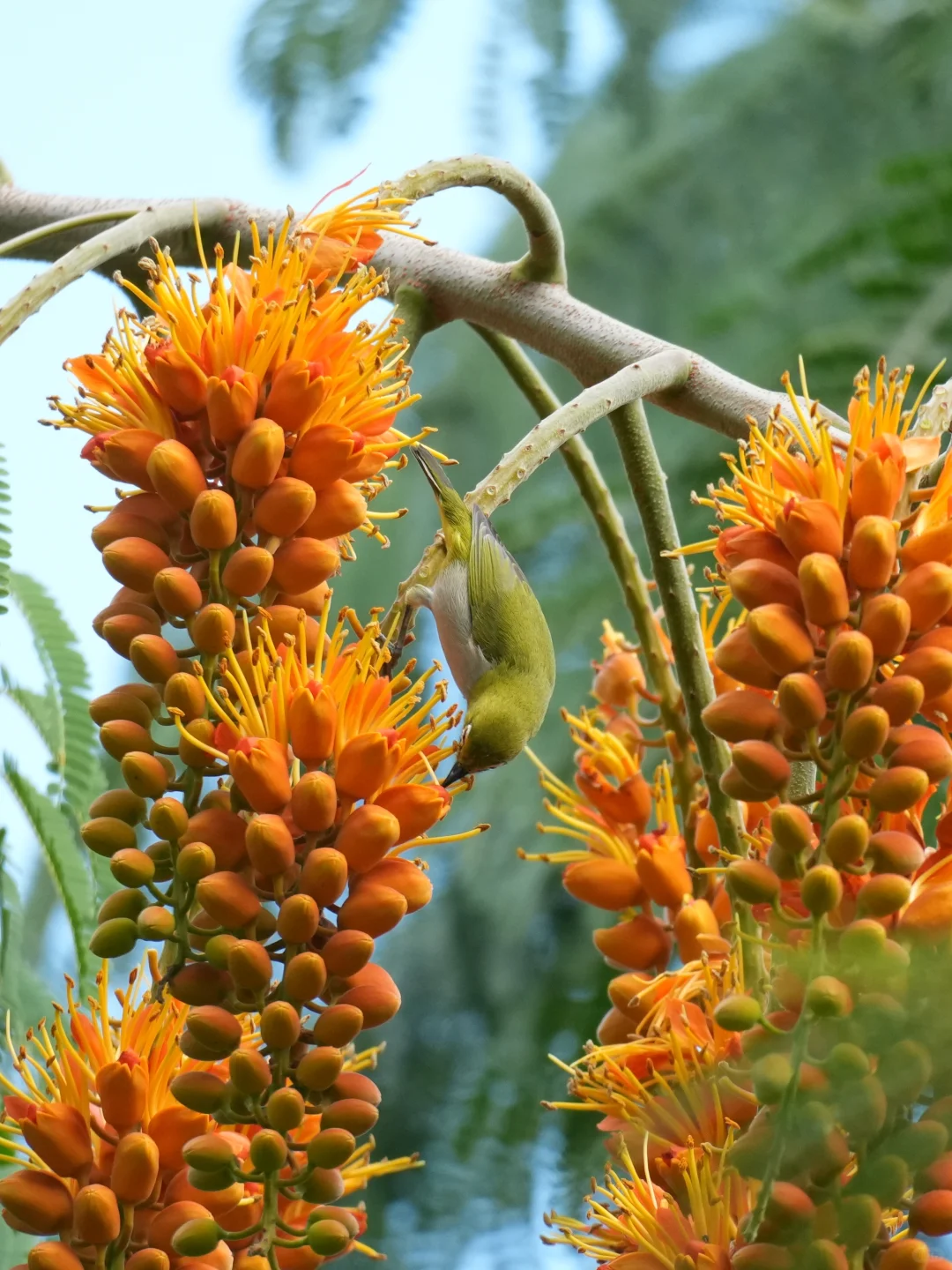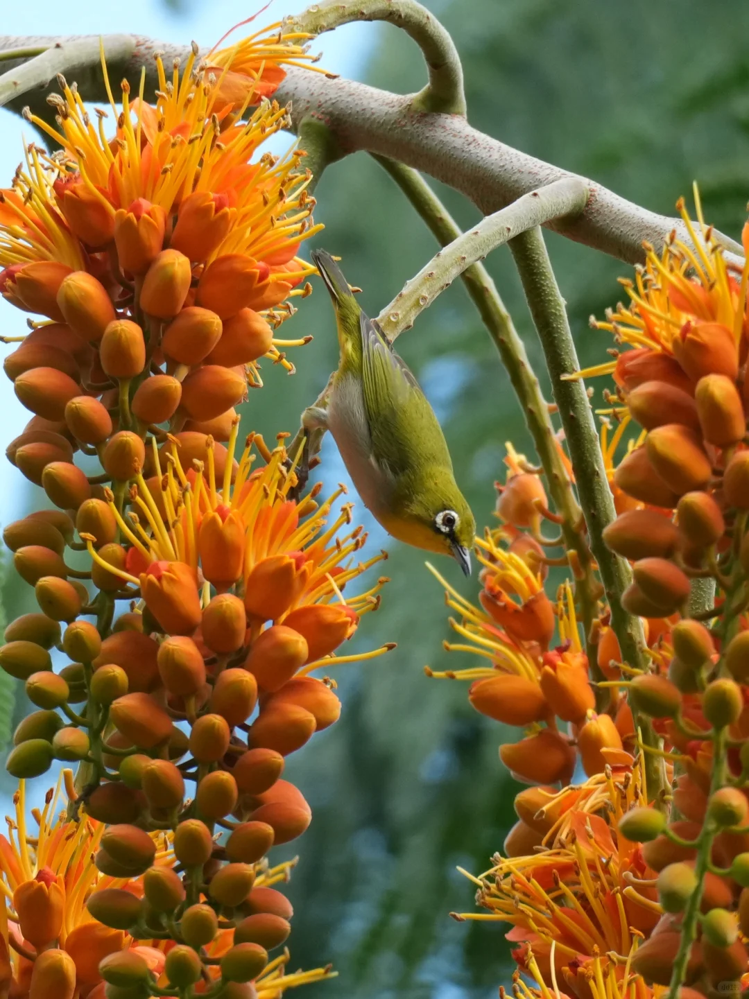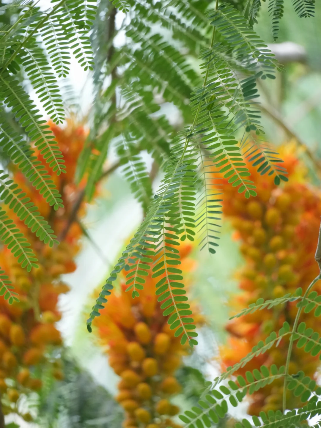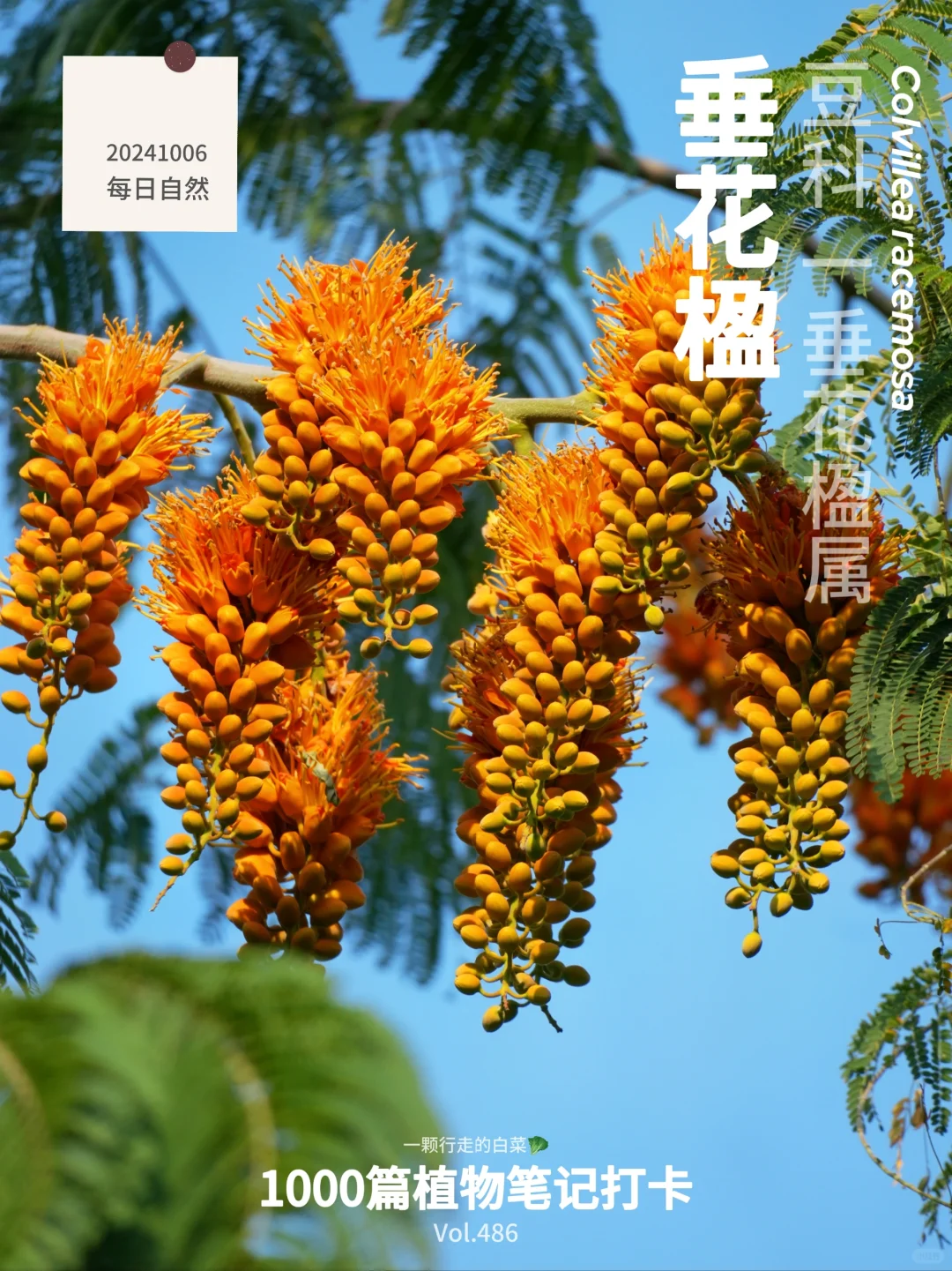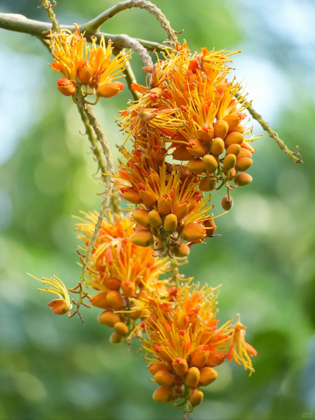 🌼 橙黄色的花朵,一串串垂下,如同金色的雨滴,随风轻轻摇曳。她的名字,垂花楹,正是由此而来。
