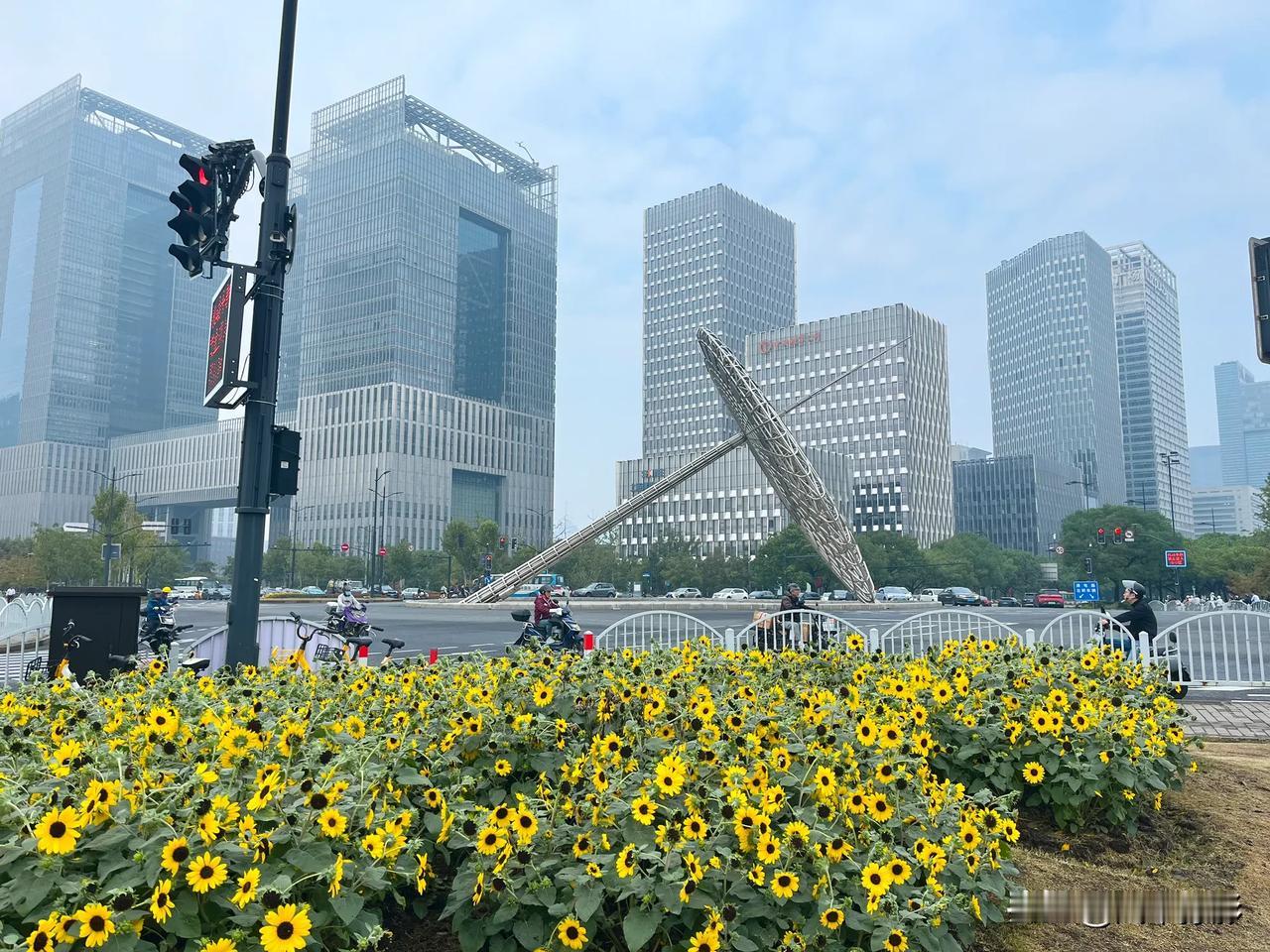 这是今年世纪大道第二次种向日葵了,国庆前刚种好的,植株没有上次高,不过花都开好了。据我的经验,半个月内是花开得最美的时候,过两个星期花会慢慢凋零残败,喜欢拍照的朋友不要错过。虽然只是几小块花田,但这里每天来来往往的人很多,大家看到这些醒目的花,脚步都不由放慢下来。 世纪大道是浦东新区的代表路段,有时间的朋友可以走一走,感受一下上海的魅力。 #上海# #上海身边事#