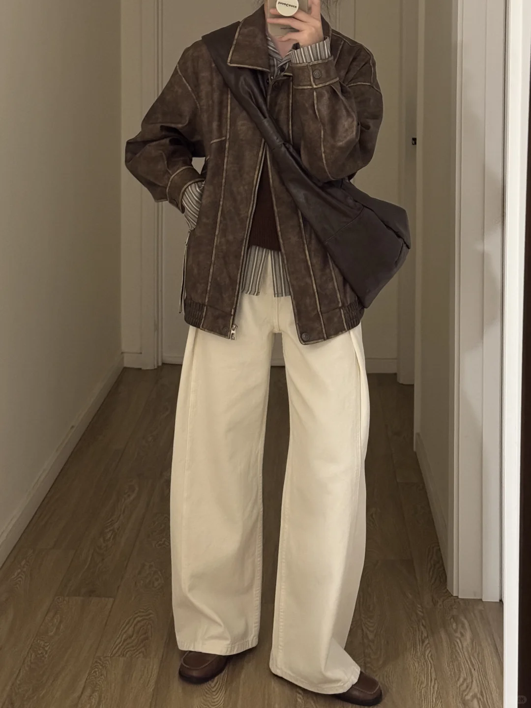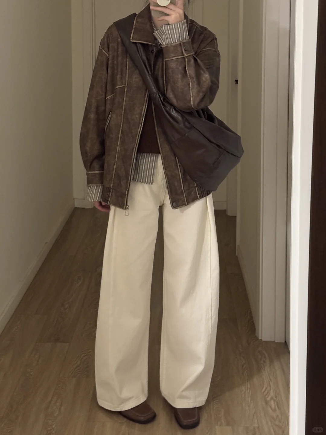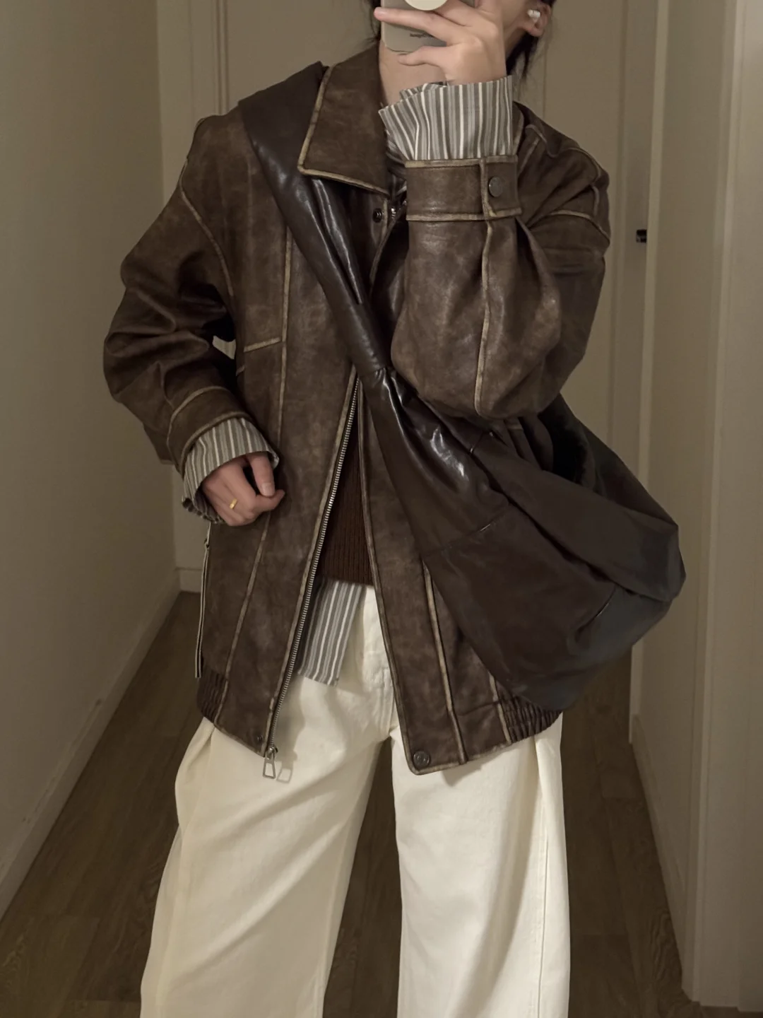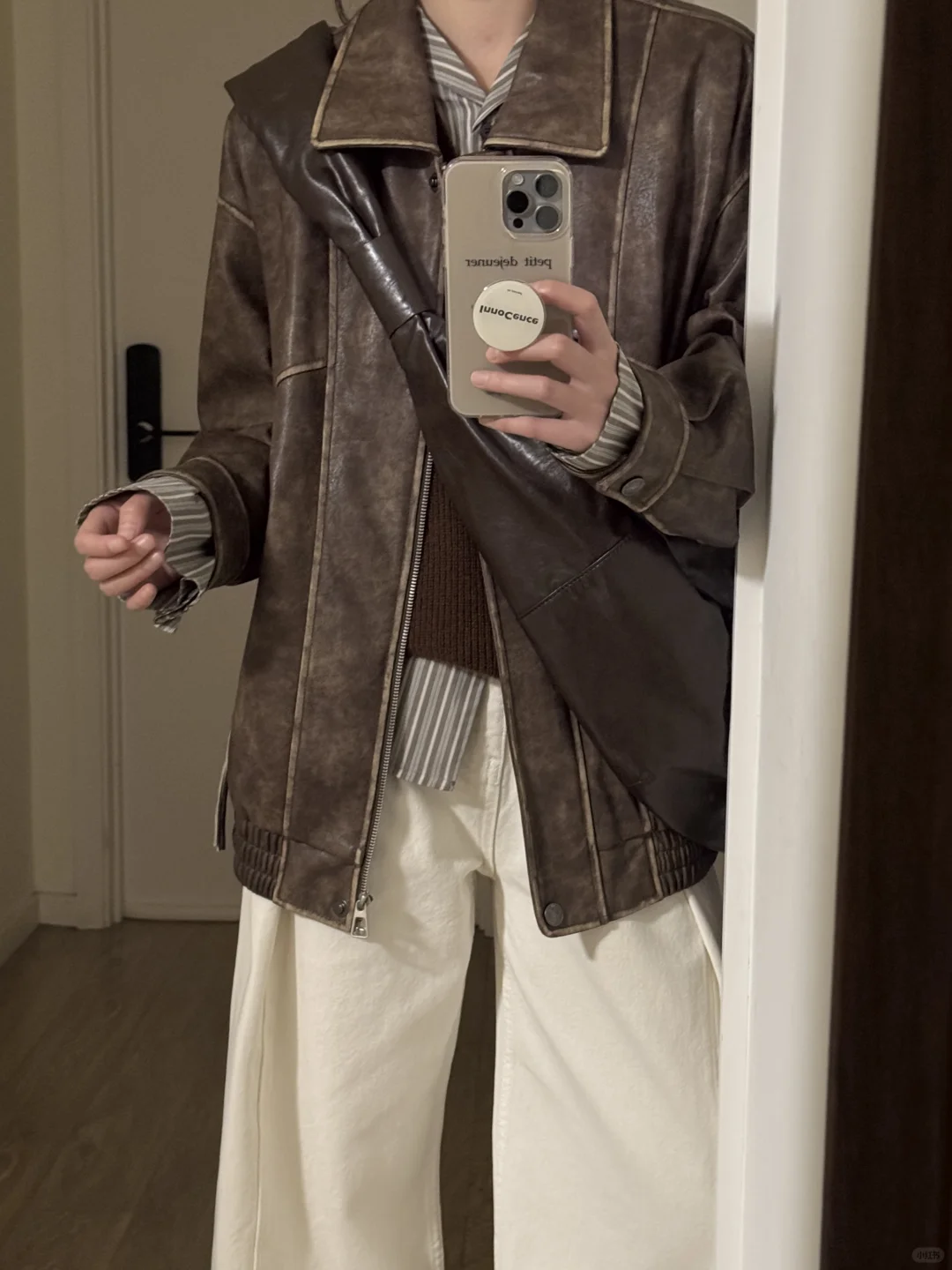 秋冬穿搭 早秋外套 皮衣 夹克 外套 皮衣穿搭 实用穿搭 复古穿搭 美拉德