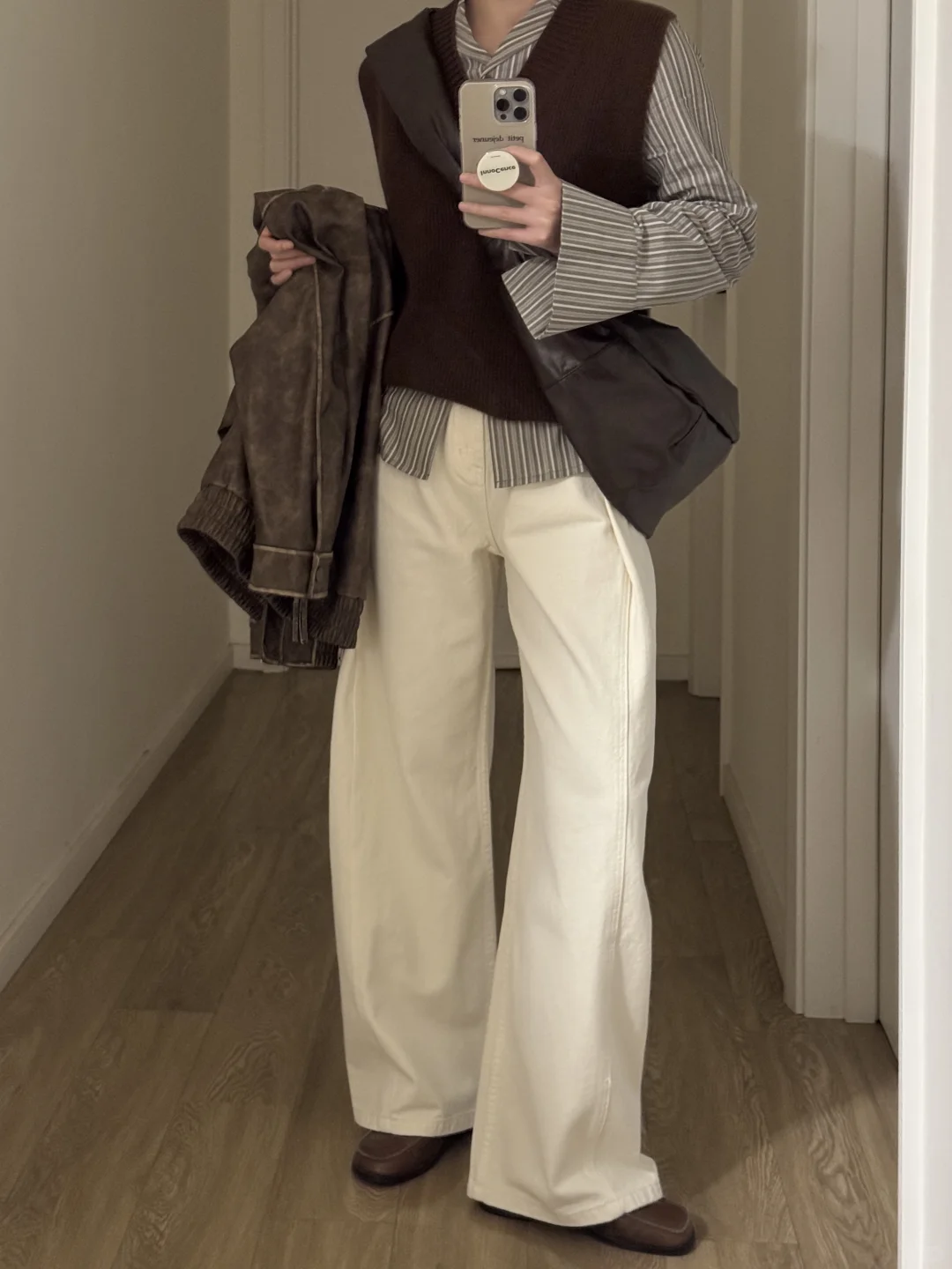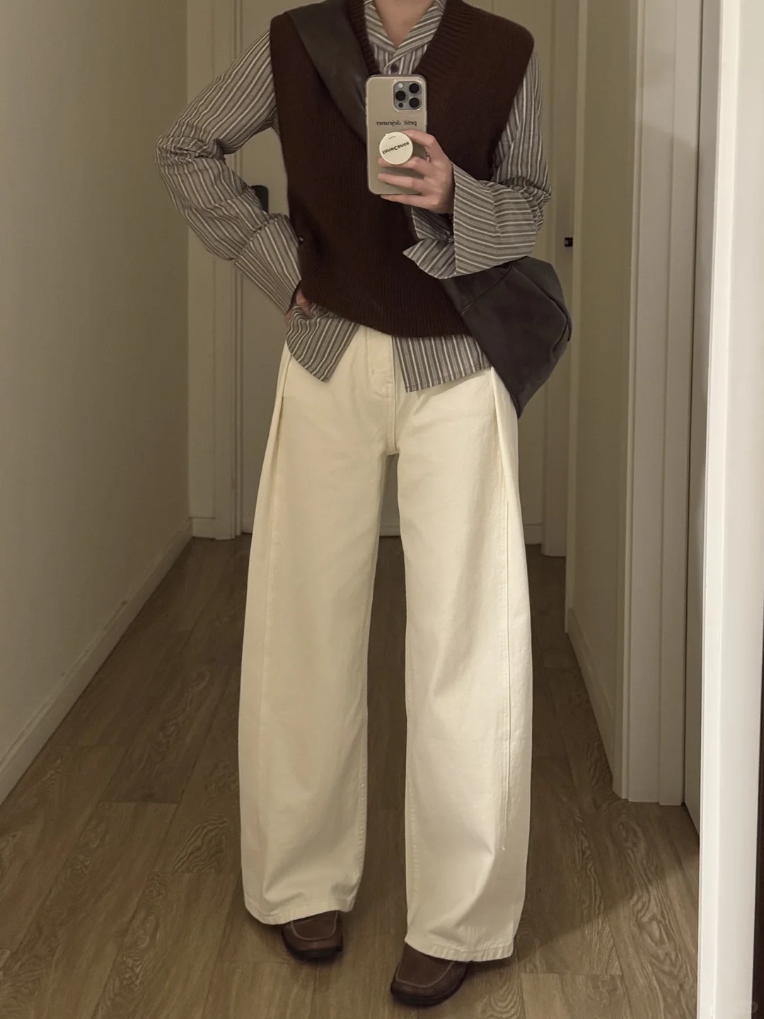 好秋冬韩系复古针织红毛衣叠穿卡其裤🚢