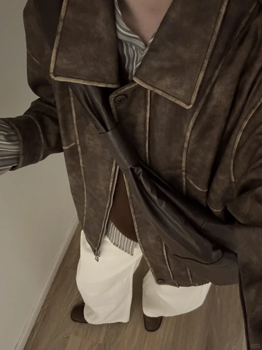 好秋冬韩系复古棕咖皮衣衬衫外套叠穿🪵
