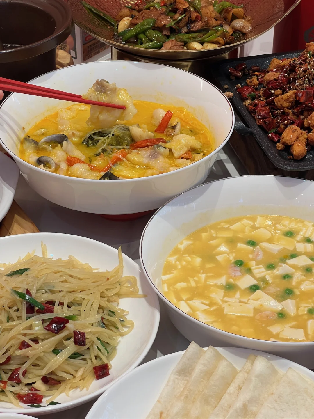 辣子鸡 谁能不喜欢吃这种麻辣口的啊! jujujuju入味!!好吃!!甜辣口的!! 虾仁蟹黄豆花 好下饭!拌米饭jujuju香呢! 辣椒炒肉简直下饭神器!酸辣土豆丝也是贼香!! 还有超多菜品下次一定要来打卡呢!!