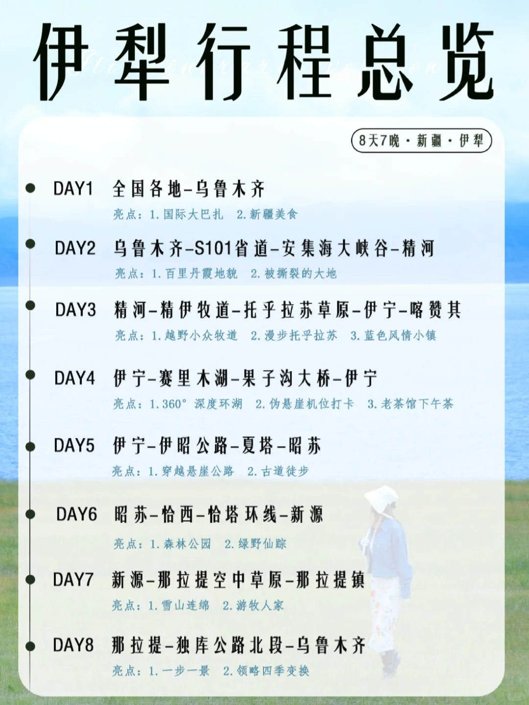 想去伊犁不想做攻略?报团挑花了眼的看过来,让有趣专业、超懂年轻人的AnyTravel搞定这一切📣8天7晚不走回头路带你领略伊犁高光时刻🌟赏丰富的景观、吃美味的新疆美食、体验蕞具疆味的玩法❗️