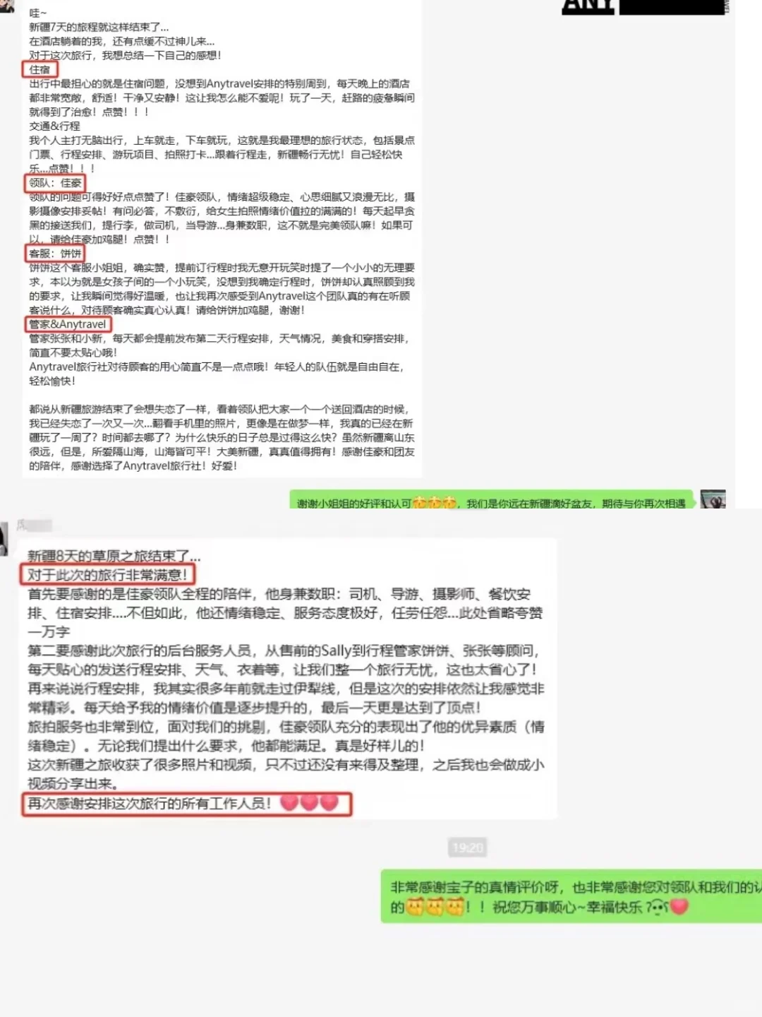 耐心解答疑惑的客服小姐姐,在来到新疆之前细心提醒,会发送穿搭指南、出行必备清单等,缓解大家来第一次来新疆不确定因素带来的焦虑