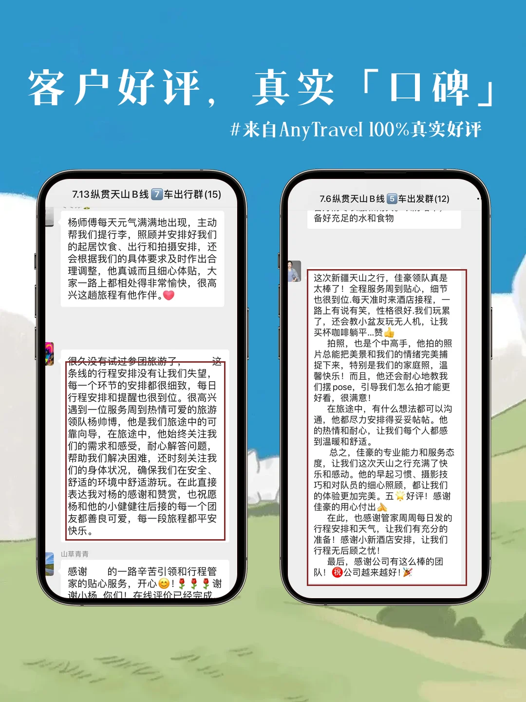 5️⃣产品经理亲自踩线,路线设计有我们自己的思考,大IP景点到小众秘境一次满足,穿越小众路线,带你看不一样的新疆,体验蕞原始的疆味,还避免了旺季新疆车流人流拥挤,不用人挤人