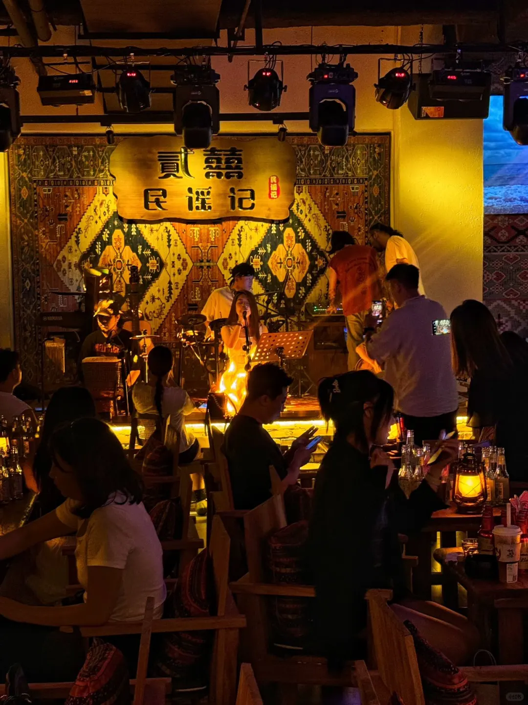 门这家宝藏的民谣酒吧真是可以嗨到爆啦哈哈哈 最近发现了一家环境氛围特别不错的宝藏民谣酒吧 一进门就能感受到里面很不错的氛围呢 很享受这种安静舒适惬意的听着歌喝酒 舒适感也是直接拉满了 他们家每天晚上都有演出 歌手基本上都来自丽江等等古镇的老炮儿 民谣乐队 也很有个性 以民谣、经典老歌、摇滚🤘为主 牢牢把握住了80后90后00后 的心 . 无论是周内还是周末 在这儿三两好友聚在一起喝🍺聚会聊天 感受微醺是太适合不过啦! 还可以点精酿和烧烤~ 陕北开过来的品质连锁店 喜欢民谣的宝子快来感受一下
