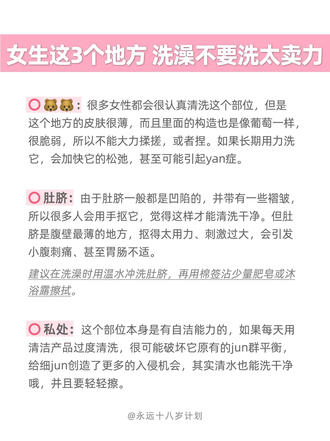 永远十八岁女生这3个地方洗澡不要洗太卖力