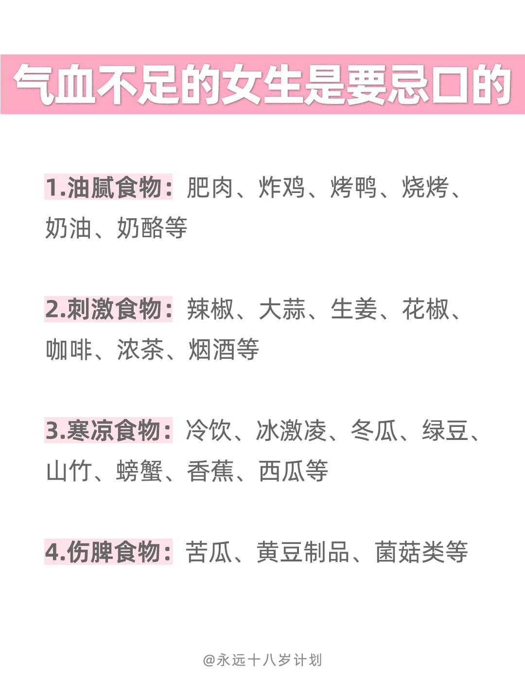 永远十八岁气血不足的女生是要忌口的