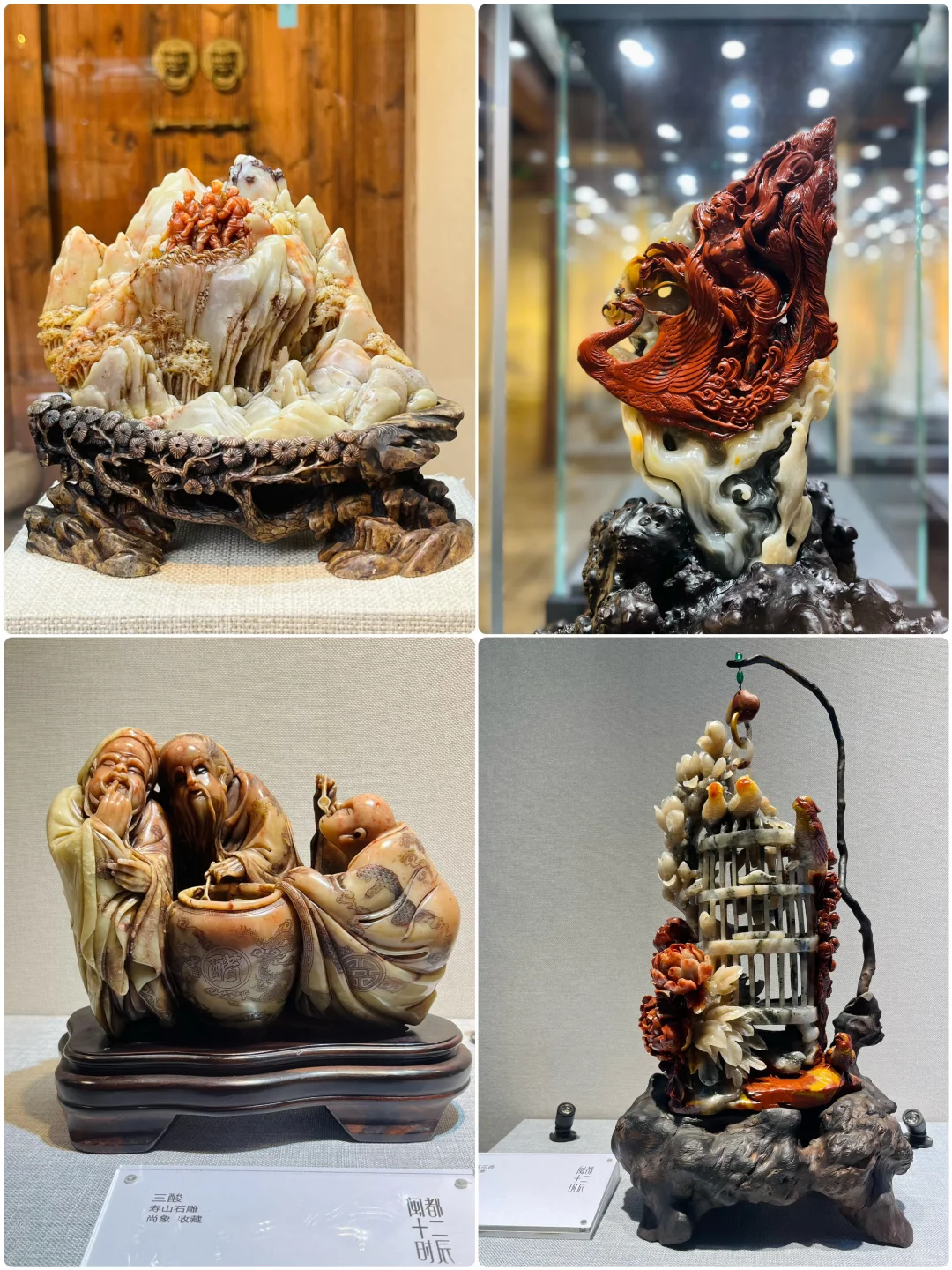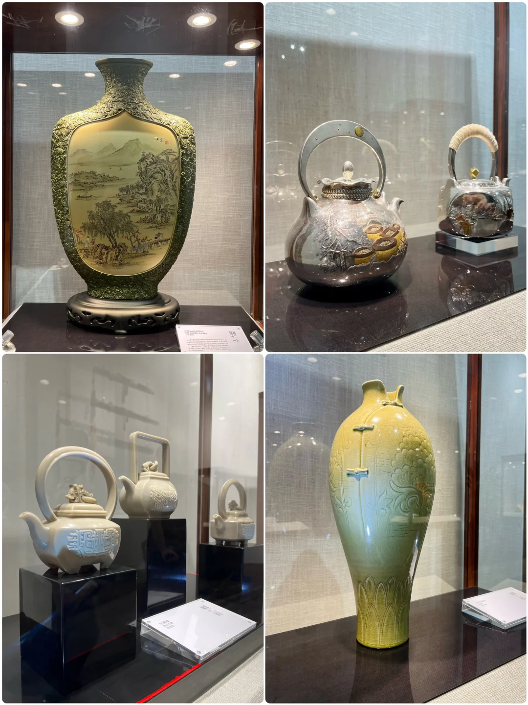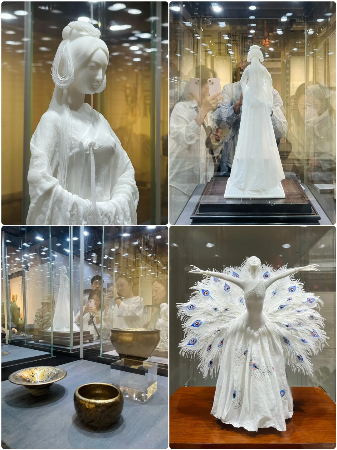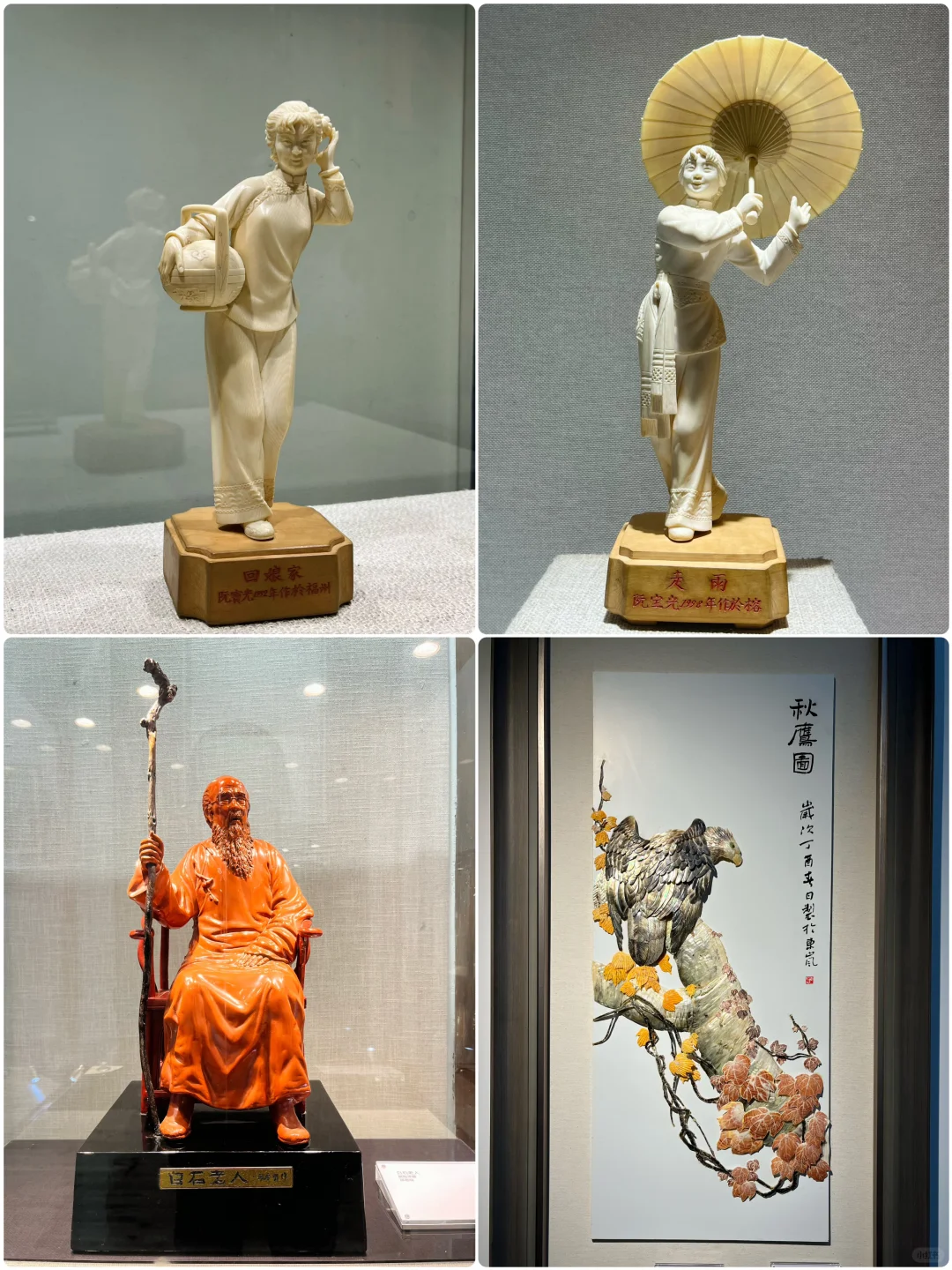 除了玉漱公主、孔雀公主等德化白瓷作品,其余展品含脱胎漆器、寿山石雕、贝壳雕、木雕等福建省建国75年来的工艺美术品,展品丰富,精品繁多。