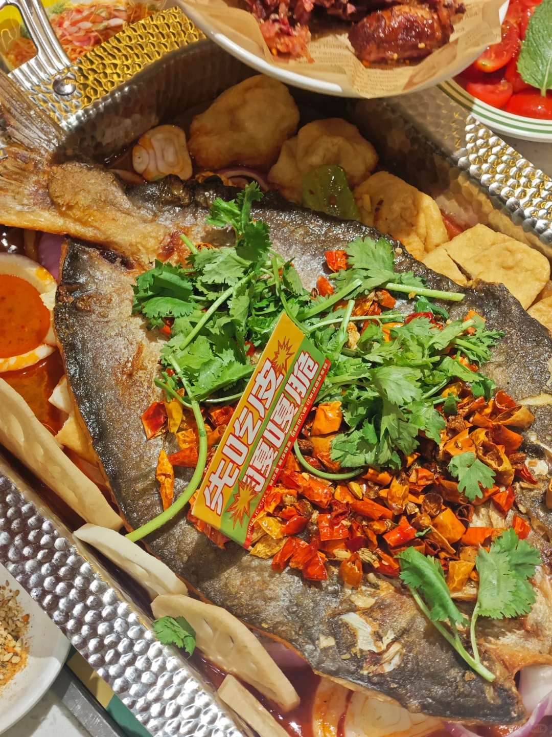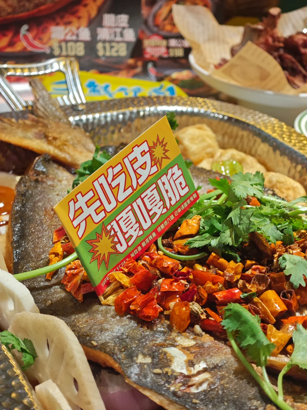 店名 舅吃鱼 鱼皮脆脆的太好吃啦! 点的湄公鱼也没什么刺 - 上桌先吃皮 然后再吃鱼 吃完再下菜 汤底也是比较浓郁的! 下菜也很好吃! - 新店开业活动也挺多的[笑哭R]