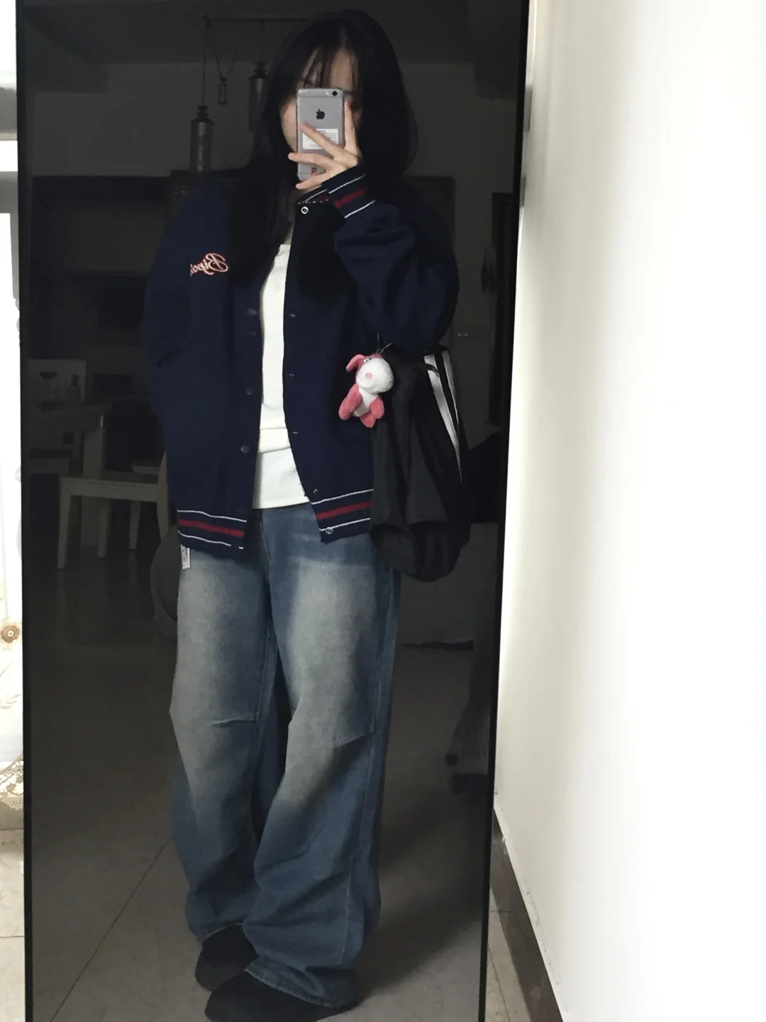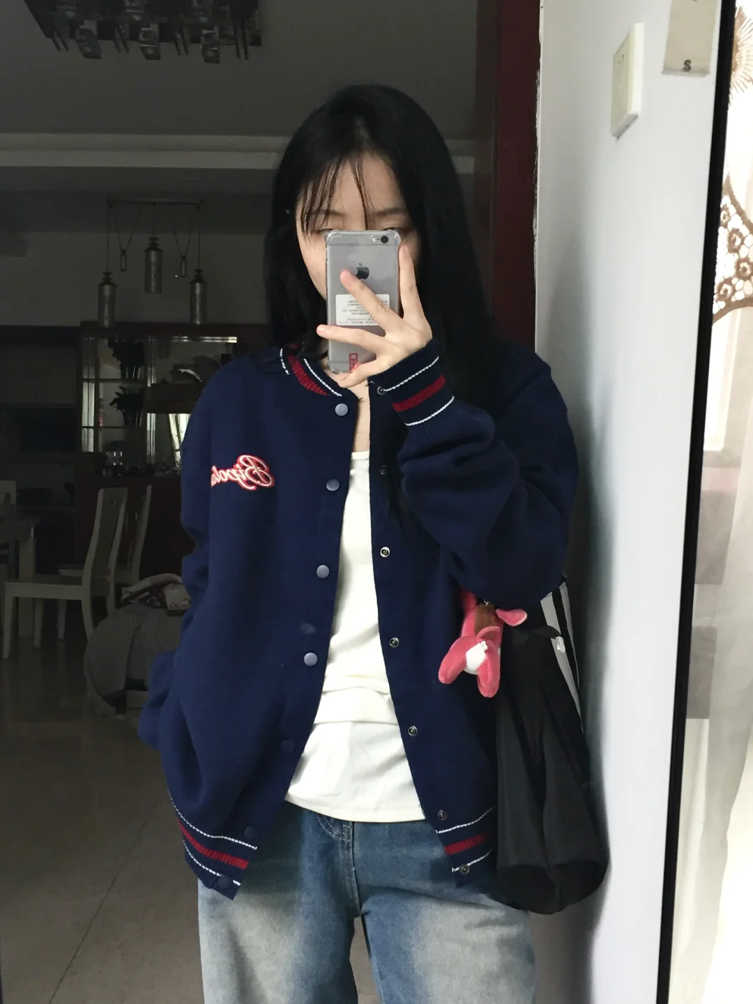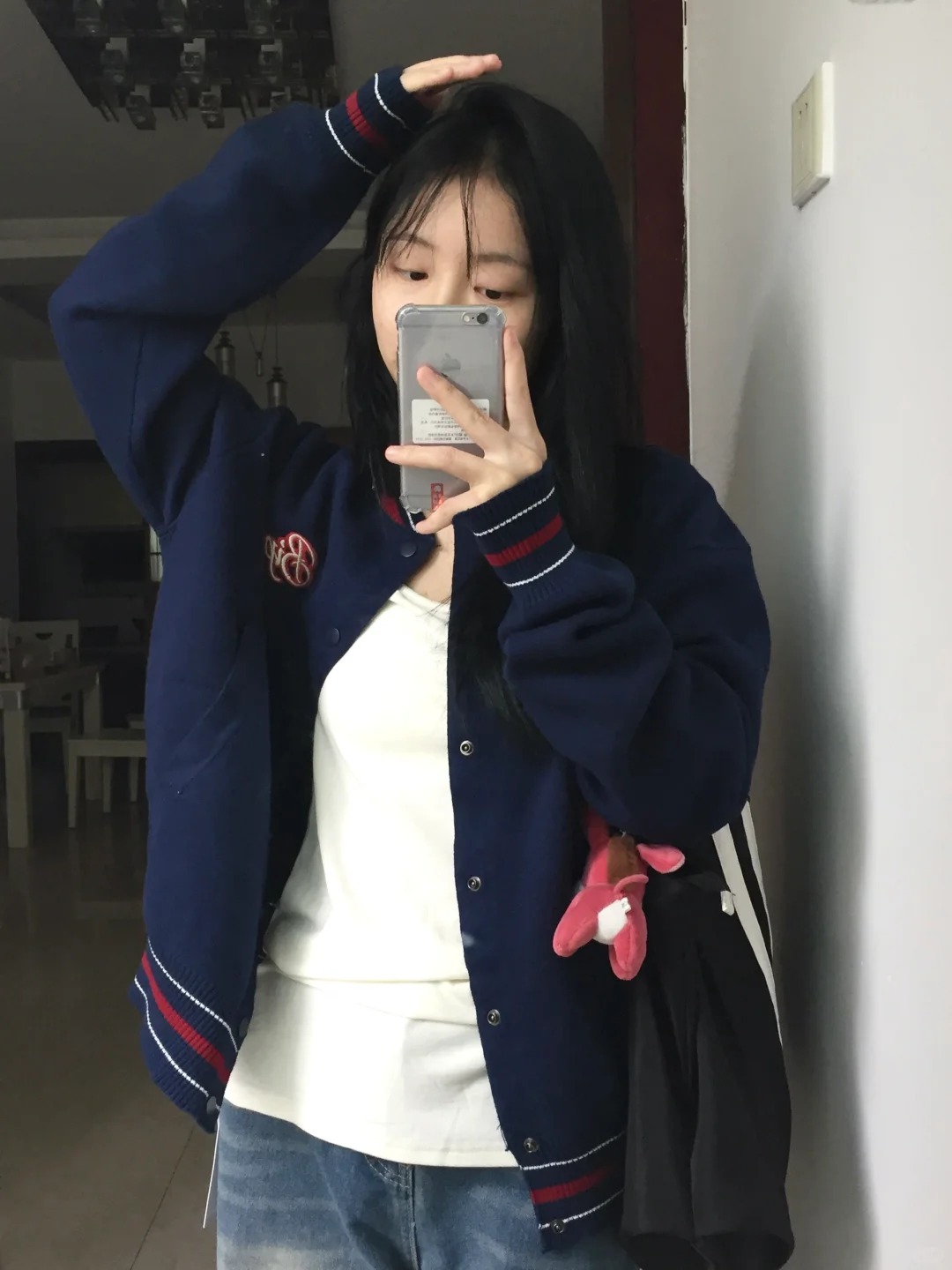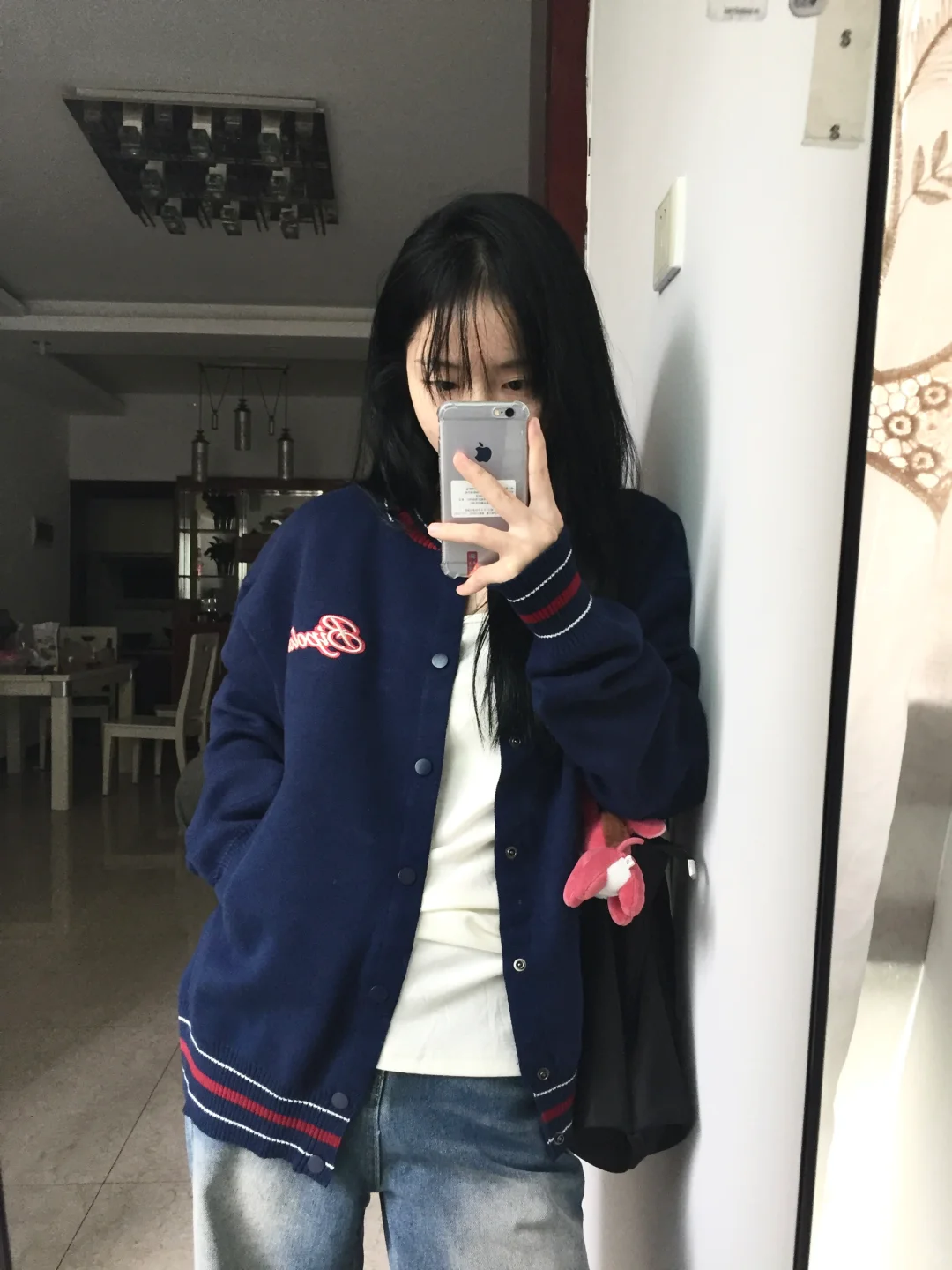 有点像棒球服的样子 真的很喜欢藏蓝色!