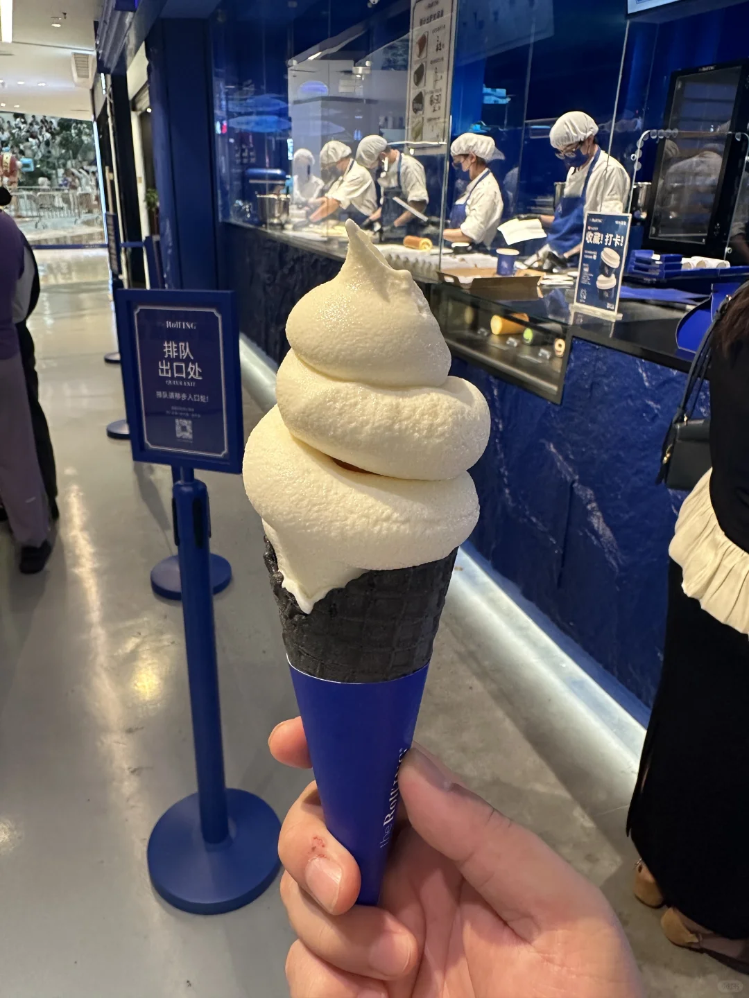 雪糕还是很好吃的,很润,奶味充沛,美味鲜甜,吃的时候,比zakuzaku的味道更有方法论,感觉它用了一些小心思,比如死命往里面放芝士?他家的单品都还是可以说的过去的,但是致命的问题,就是瑞士卷,瑞士卷如果你在路边没有桌子可以放的话,你手持它的感觉,就特别像你在机场过安检的时候,叫你把包里的肘子现场吃掉的感觉。