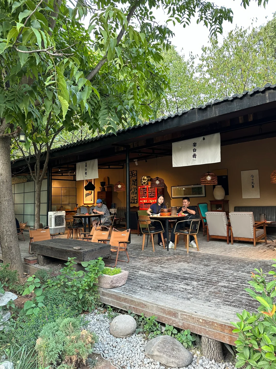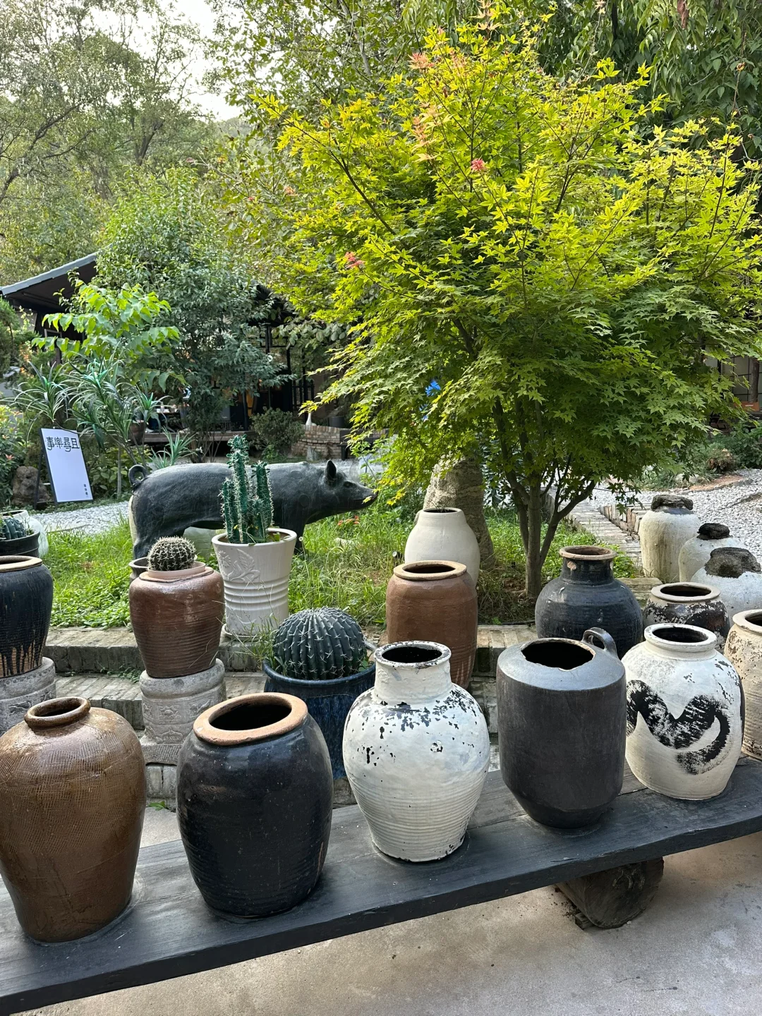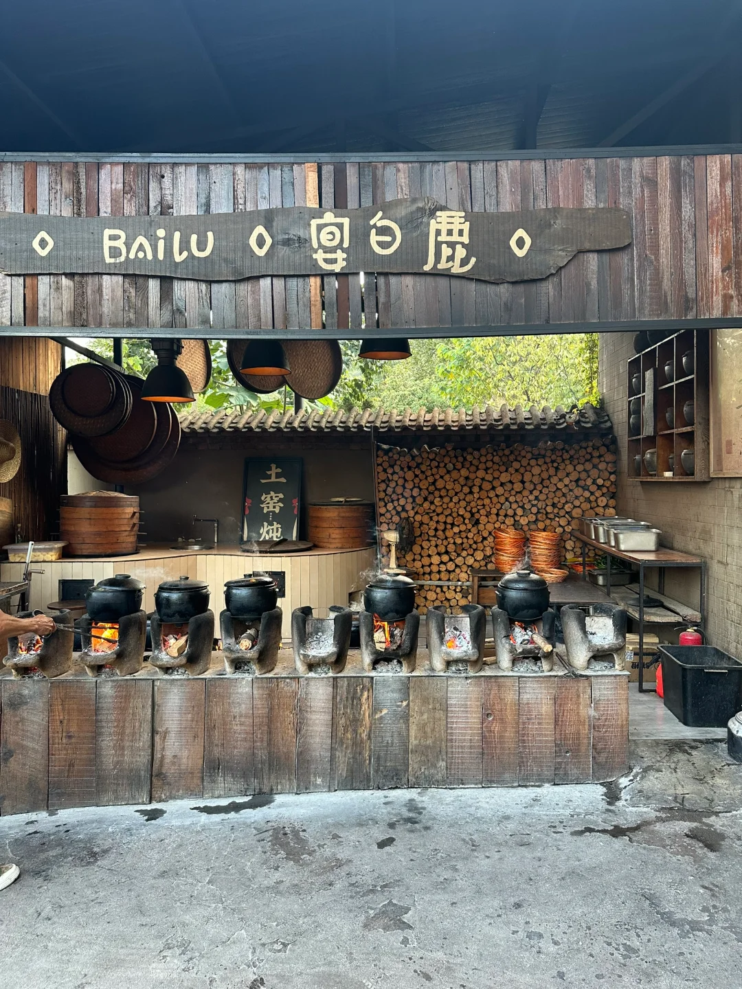 宴白鹿尊重村落,尊重建筑,尊重陶罐,尊重百灵。你进入后第一观感就是它的辅佐感,它没有大刀阔斧的修葺盖楼,而是大量的延展了门帘与坐席的踏步,余阳跟树木的插缝,每张桌子都是旧的,每个服务都是村民,柴火鸡,慢卤味,农家饭,好不爽快。