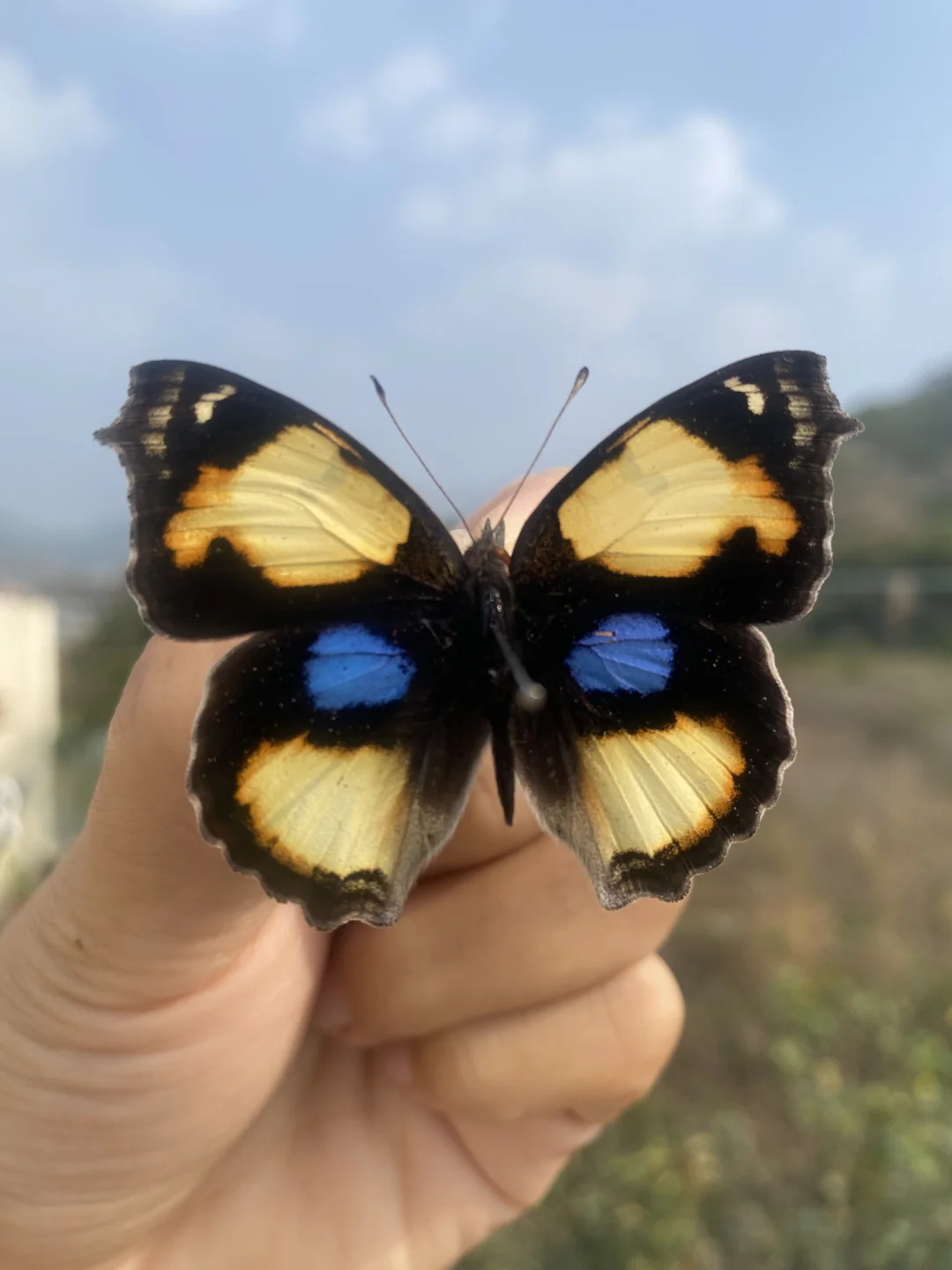 它真的好美好美呀,我好喜欢它后翅蓝紫色的斑点。