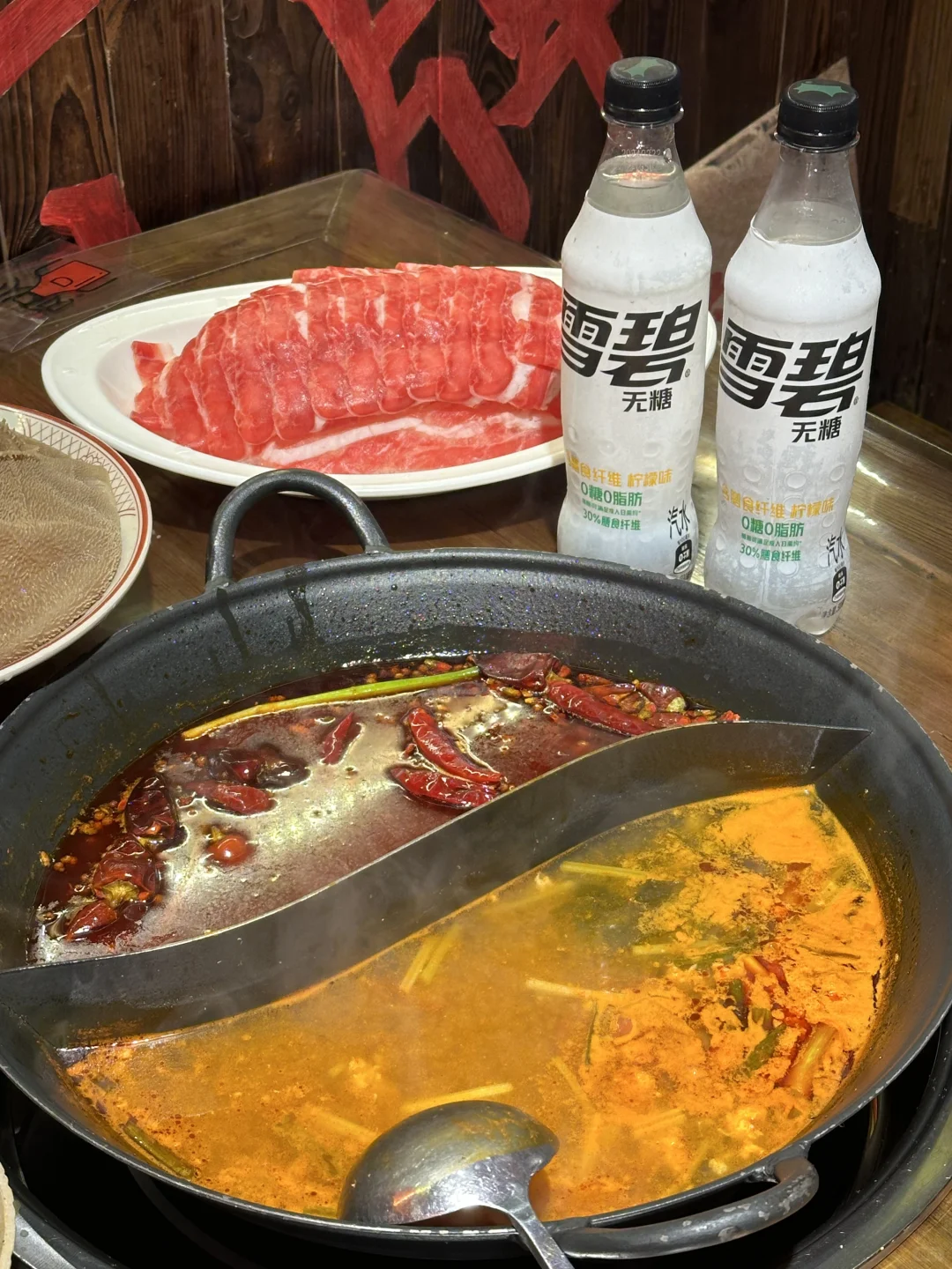 入秋的第一顿火锅友友们安排了吗 下班后的重庆火锅真的超暖身子 一口下去真的仿佛回到四川,最爱他们家的毛肚 毛肚耙牛肉放在红彤彤的汤里 真的太香了!! 来一口0糖0卡的神纤雪碧 还含有膳食纤维,喝一瓶相当于吃了一斤菠菜 膳食纤维还能抑制脂肪吸收,吃火锅也无负担!