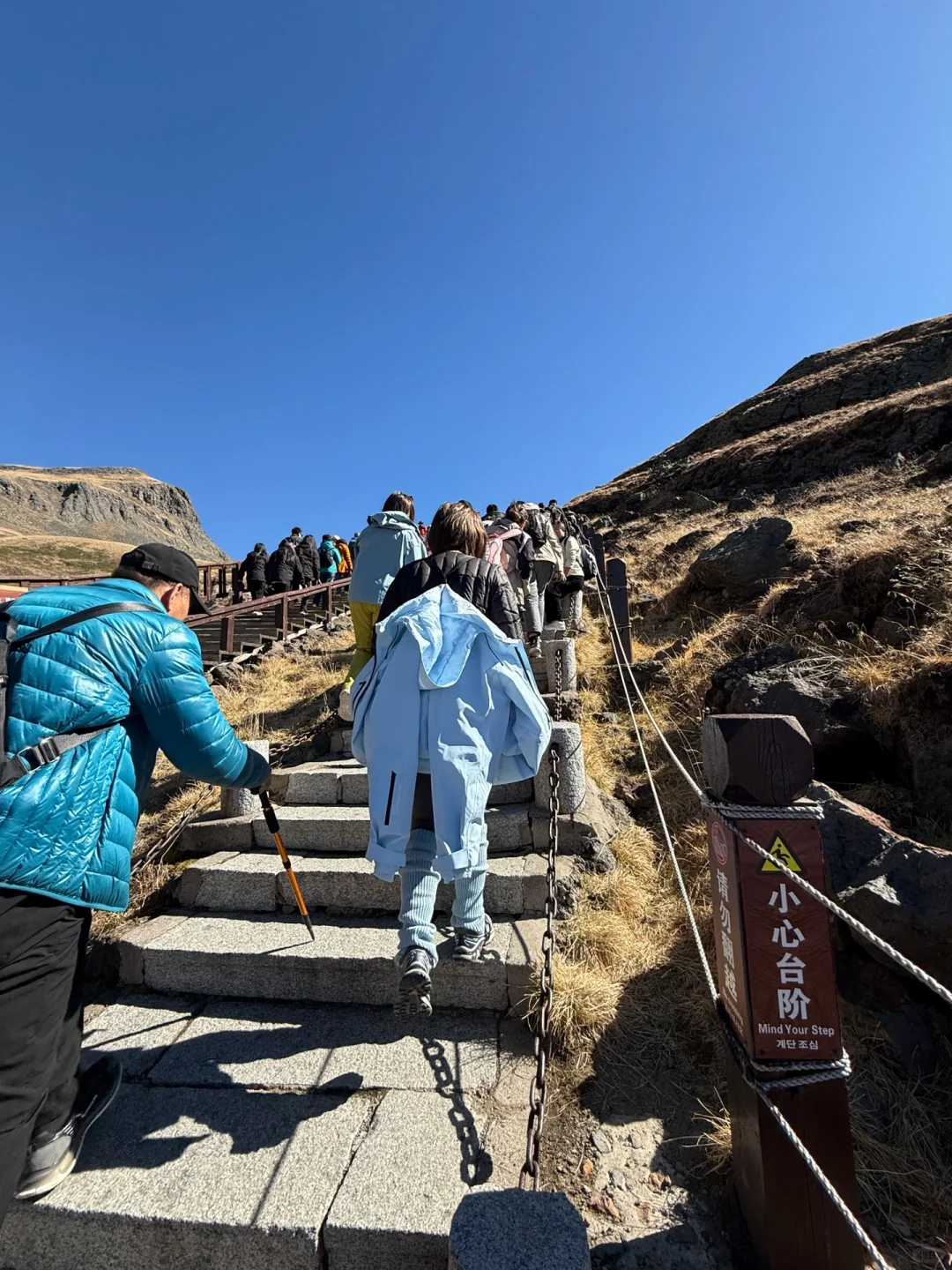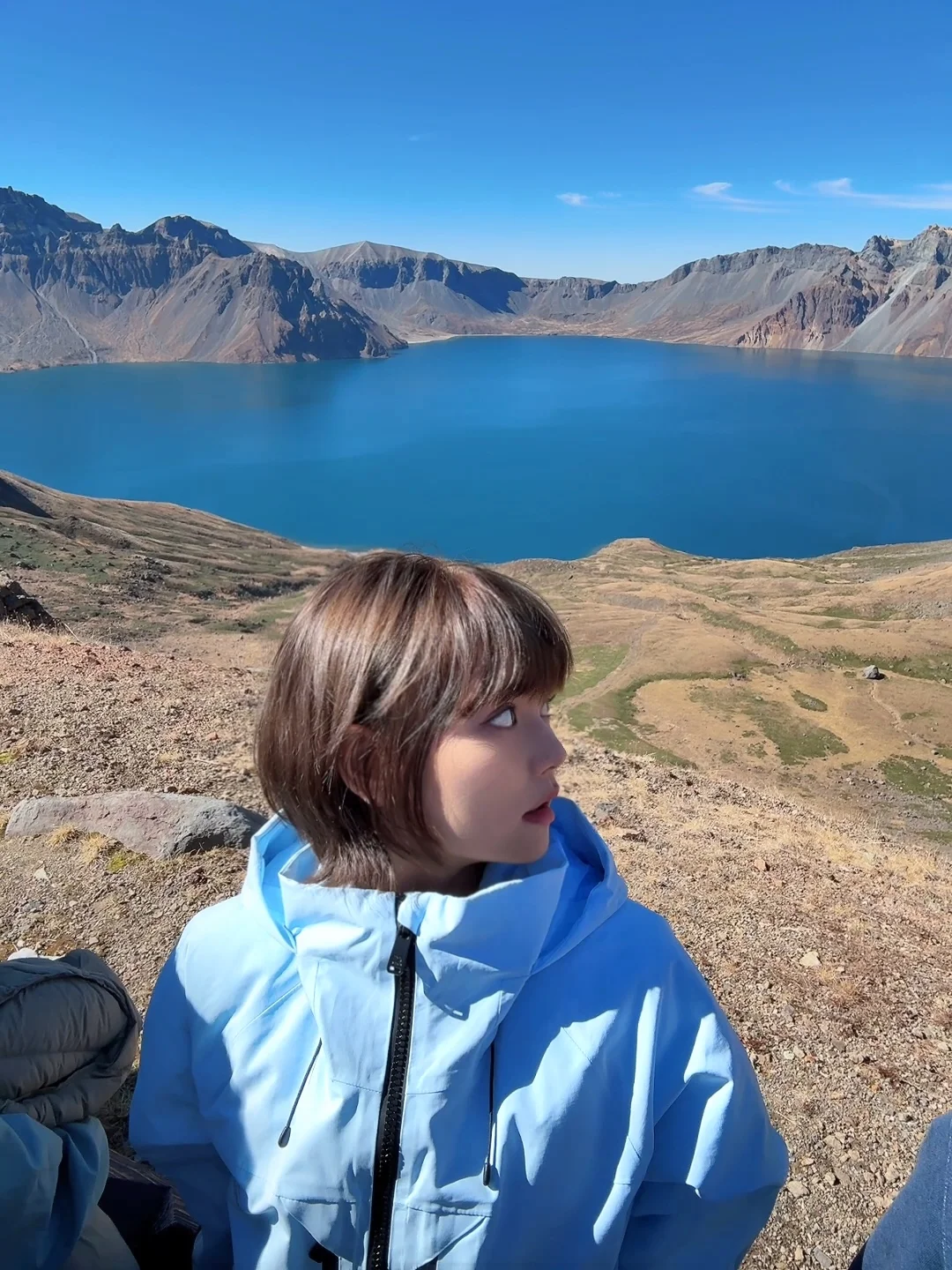 国庆想要跟天池合照需要点技术🤔 那就记录下我走上来的这一路吧 这样的景色再来1400个台阶也值得 雪服还挺适合爬山🏔️ 抗风防水 热了还能脱下来背身上 (收到好几个路人的夸赞“她这个挺好”)