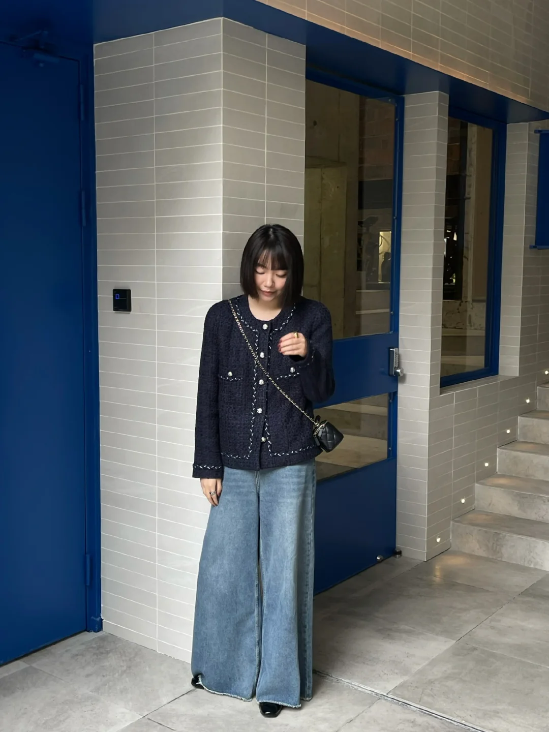 1. 体型:身材高挑,曲线玲珑,整体身形匀称且线条优美,高腰喇叭裤更凸显出腿部与