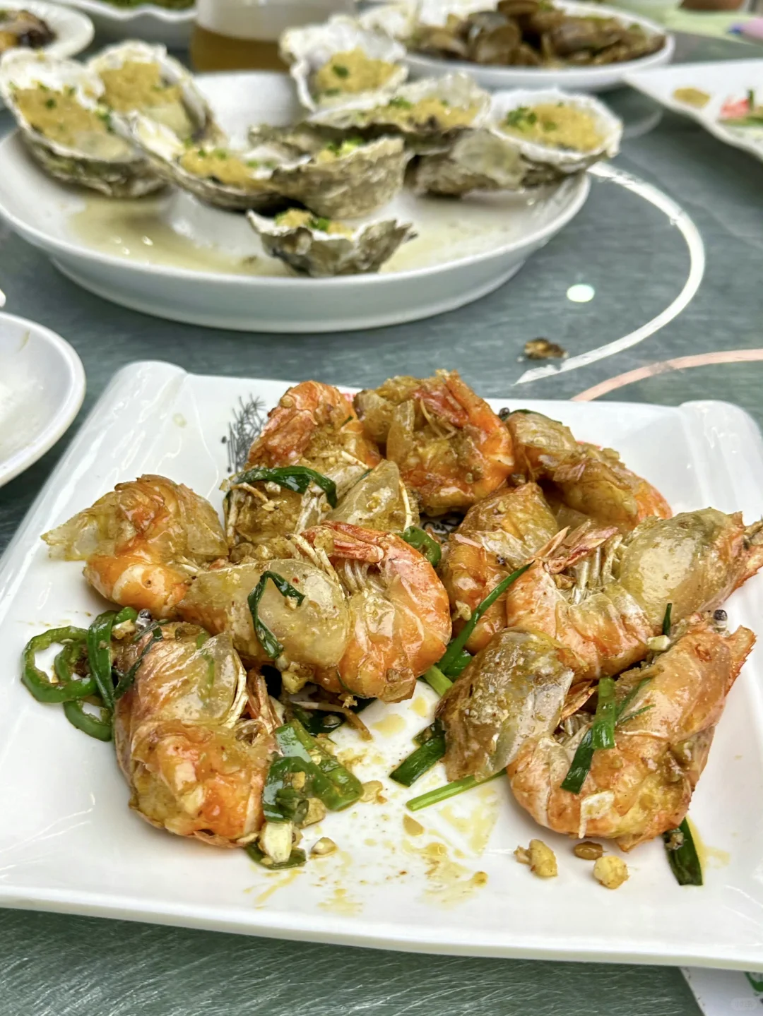 他们家的蒜蓉粉丝蒸扇贝也是一道不可错过的美味。扇贝肉上铺满粉丝和蒜蓉一起蒸煮,粉丝吸收了扇贝的鲜和酱油的香,口感层次丰富,让人回味无穷。😋