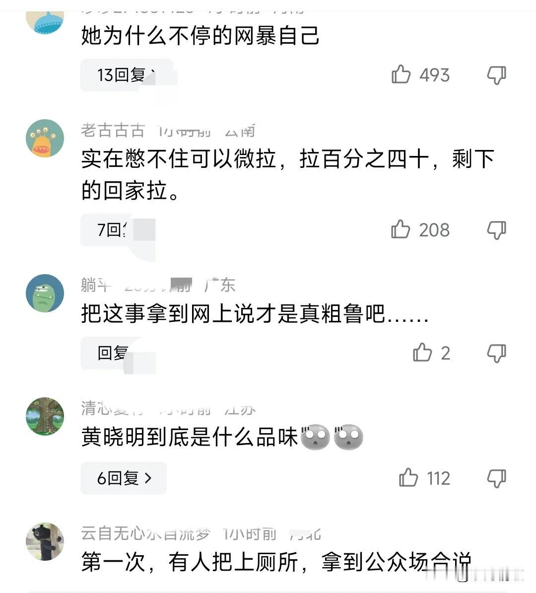 叶珂真的是掌握了流量密码,自从搭上黄晓明之后,事业风生水起,成为了网络红人。 近日,她又现奇葩发言,她竟然说出:从不在学校上厕所,这很粗鲁。 真的太可笑了,在学校上厕所,竟然被她认为是一件很粗鲁的事情。 真的是太做作了,作为一个人每天都要上厕所,这是再正常不过的事情。 没想到在她眼里却成了粗鲁,不管她怎么表现的精致,该上厕所还得上厕所,毕竟也只是一个凡人而已,还是学着接地气一点吧。 谁也摆脱不了吃喝拉撒。 听到她这番话,网友们又嘲讽了。#叶珂:从不在学校上厕所 这很粗鲁#