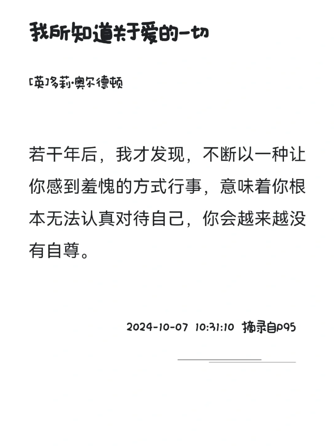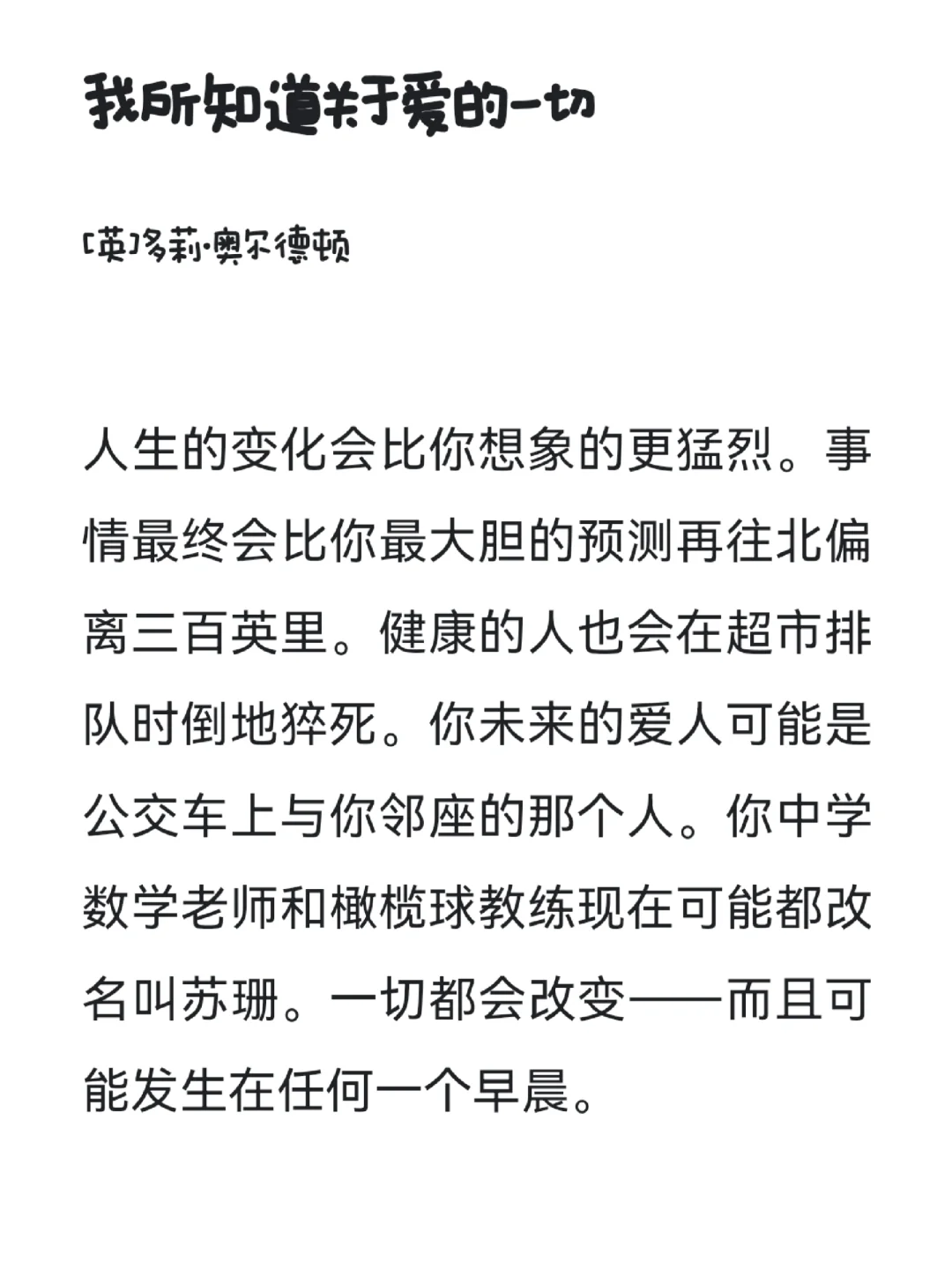 总体而言,《我所知道的关于爱的一切》是一本让人反思、自我成长的心灵之书。所有的女性,无论处于哪个阶段,都能在书中找到自己的影子和共鸣。读完这本书仿佛又重新走了一趟从十几岁到三十岁的历程。📖💕