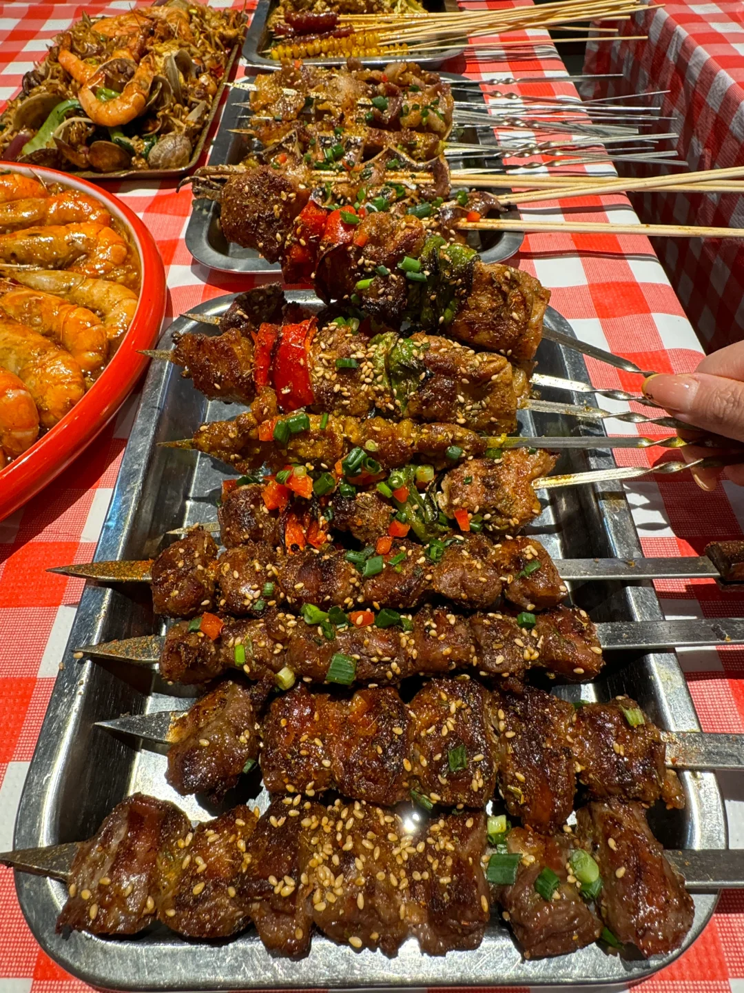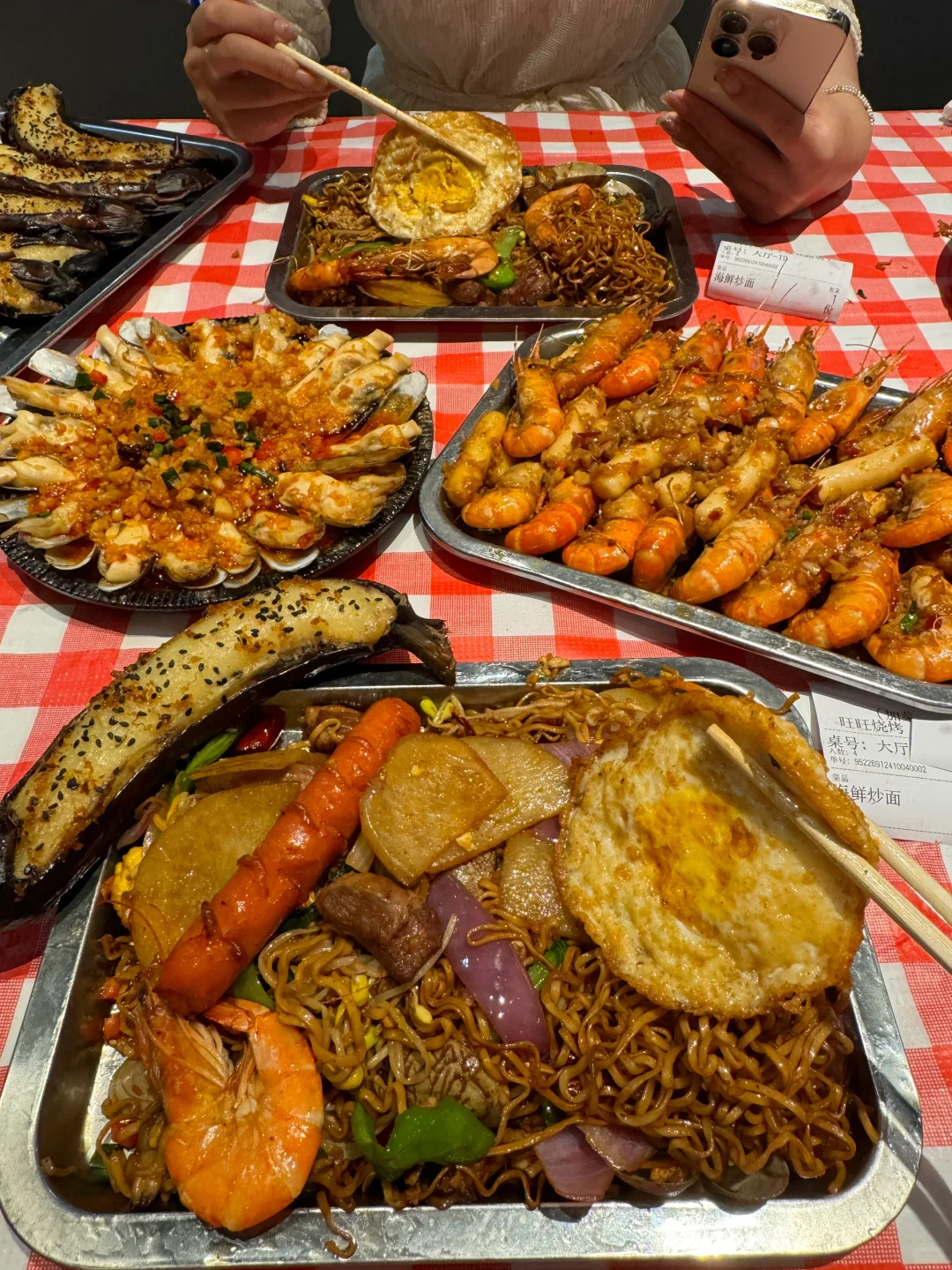 桂花糖烤香蕉🍌 海鲜铁板烧…巨巨好吃啊啊啊 就在大学城附近 莲花路 旺旺烧烤🍢